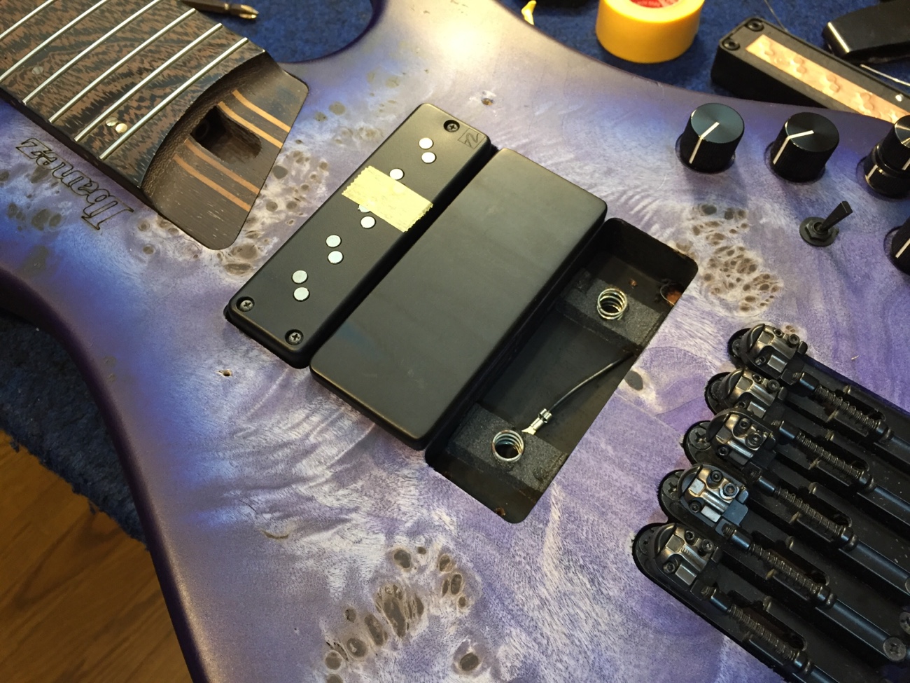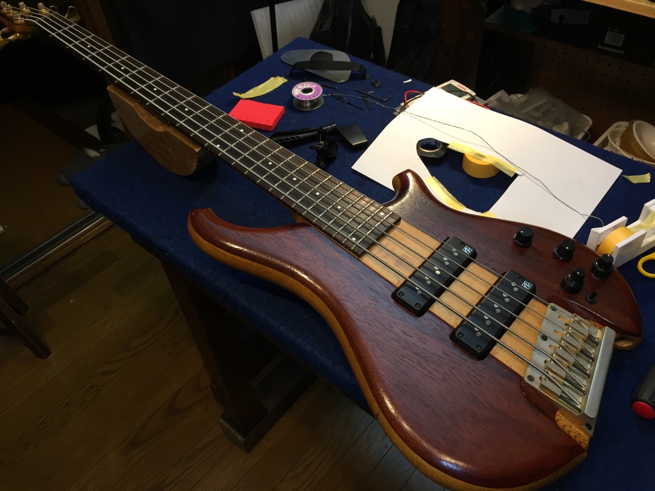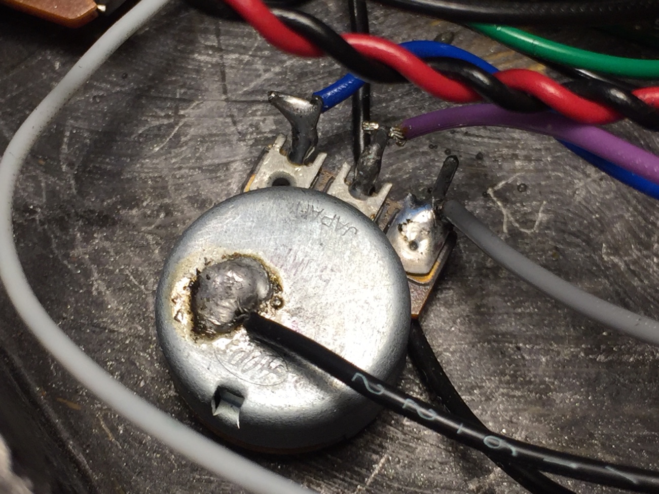 音が小さくなってしまったというスペクターです。 ポットの軸が折れてしまっていたり、ガリが出てきたので交換したそうです。 交換して音出ししたら音量が小さくなってしまってお手上げとなったようです。