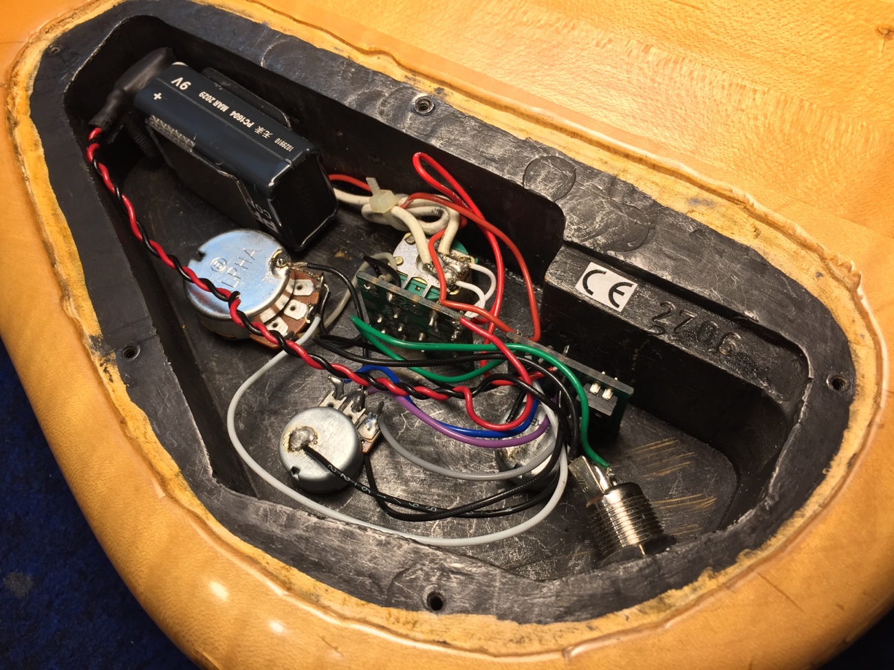 プリアンプが謎すぎるのでネット上にある他のスペクターを見てみたのですが、この配線の色と同じ順番で並んでいるものがありました。 途中で交換されたプリアンプではない可能性が高いです。