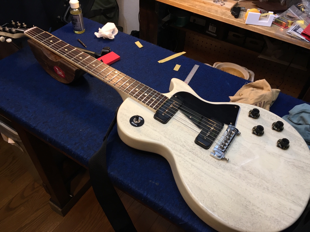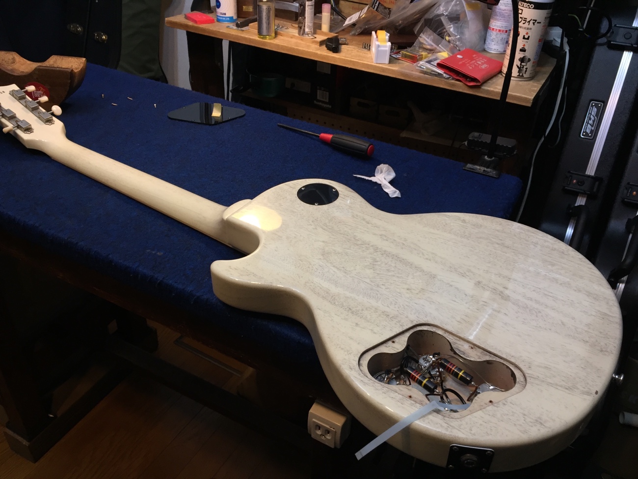 ダミーボディなので弾いたときの共鳴の仕方が変わっていて違和感がありますが、これで作業完了で良さそうです。