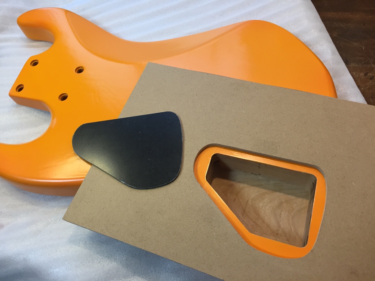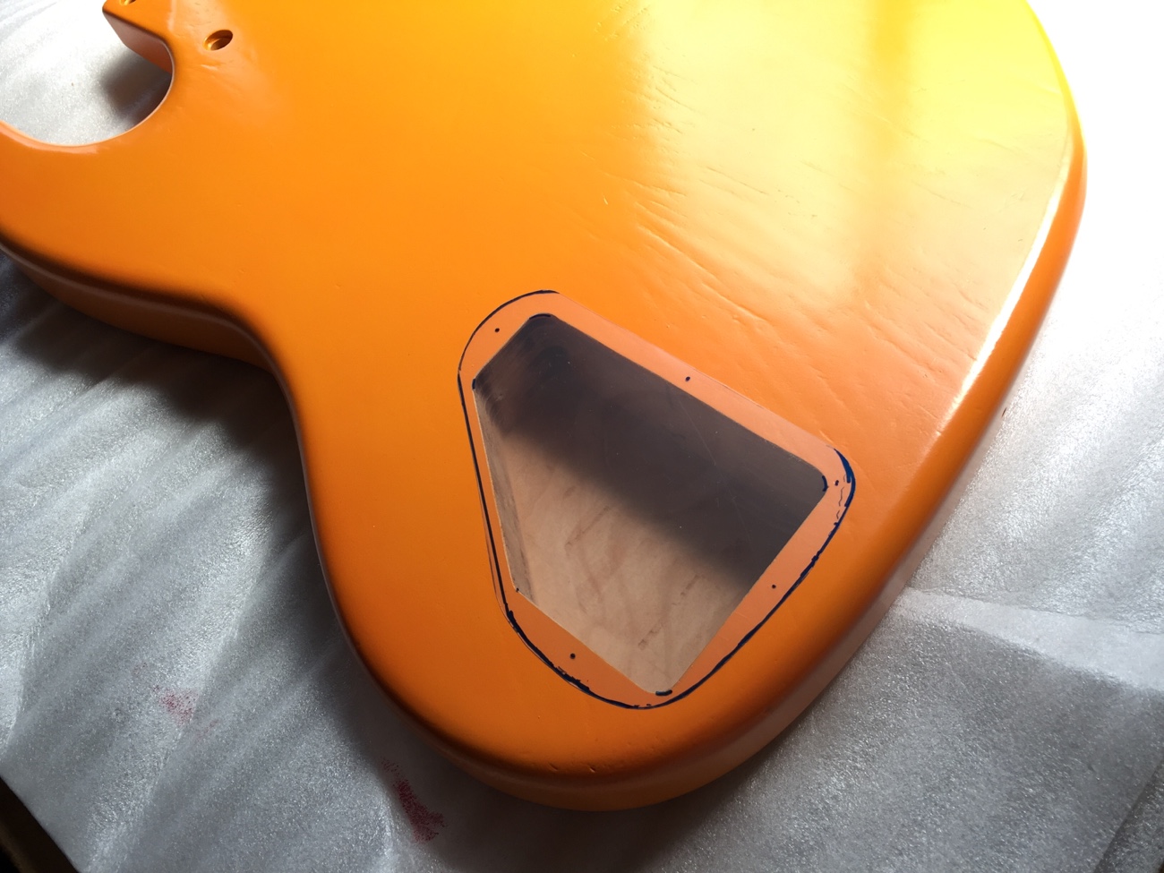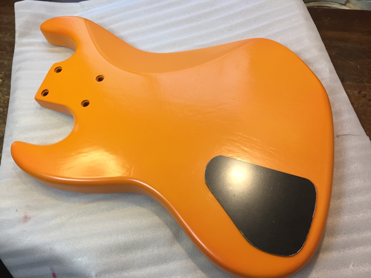 ピックガードのネジがキャビティに飛び出ていますが、一応ネジは効いているようですし、デザインがかわいいので良しとしましょう。