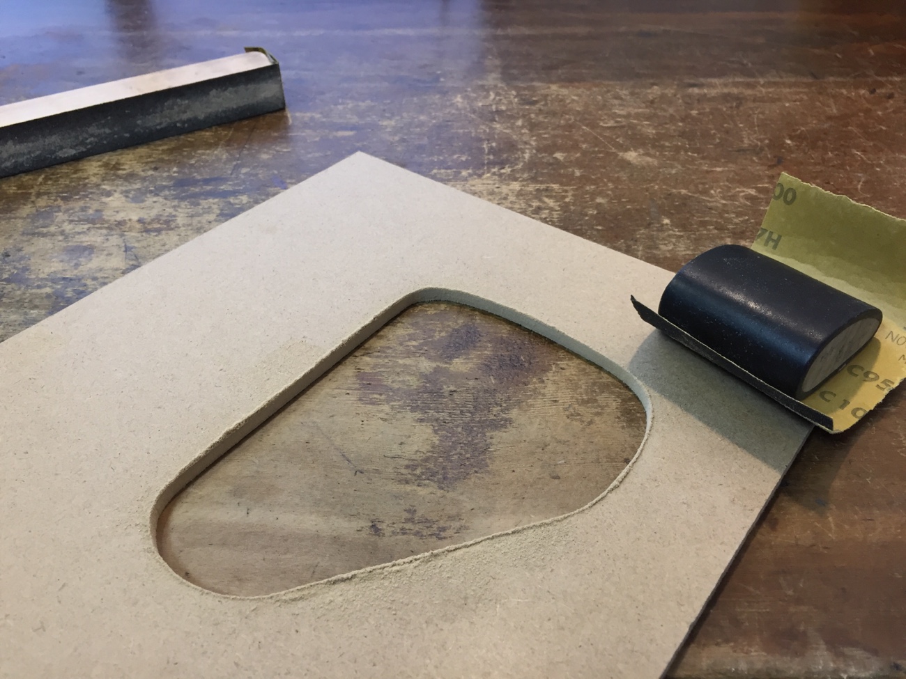 トリマー加工するために、実際の掘り込みより2mm大きいサイズのテンプレートを作ります。
