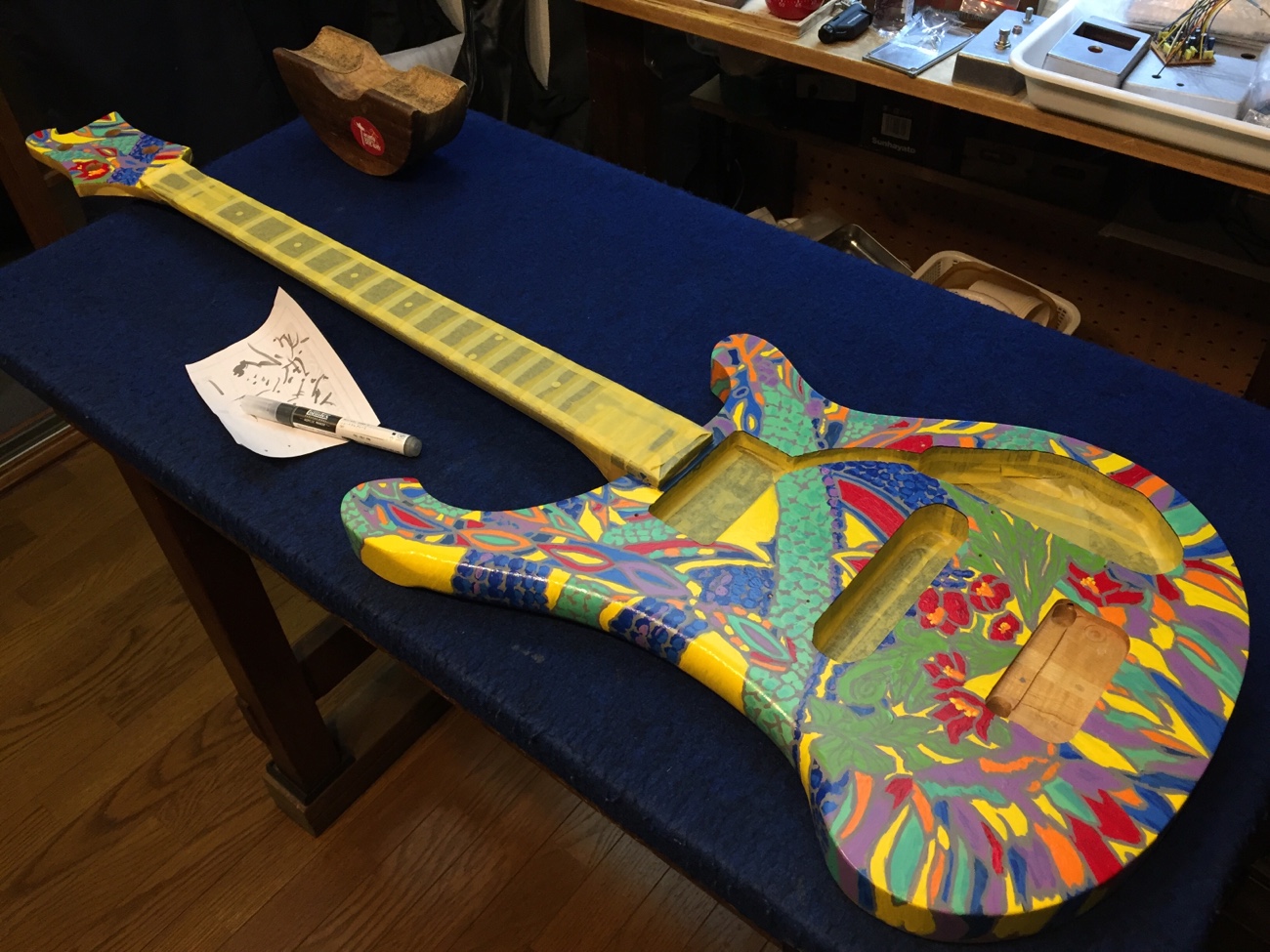 線画が完成【グレコのリッケンバッカー風ベースの改造ー31】 投稿日時: 2025年10月11日 投稿者: admin 線画の最終チェックが完了しました。 流石に複雑すぎてところどころ抜けていたので線を引き直しました。 つや消しウレタンニスで保護します。 雨の予報が続くので湿度を見ながら進めましょう。 Tweet