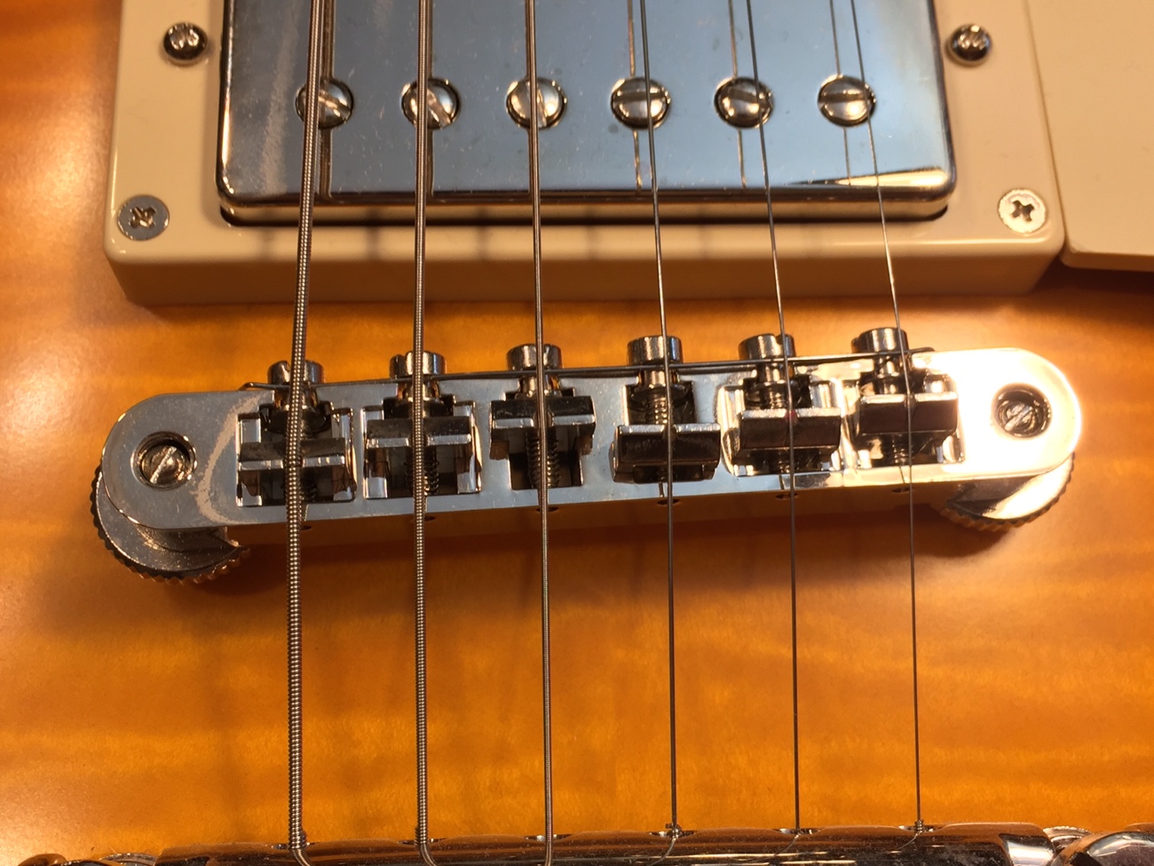 こちらはほぼ新品のエピフォン製レスポールスタンダード。 こちらも弦交換、ネック調整、弦高調整、オクターブチューニングなどをしました。 ピックアップの高さはそのままでも良い位置でした。