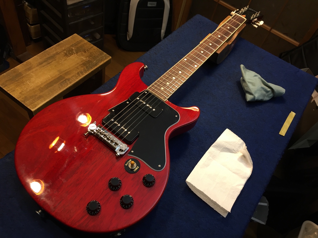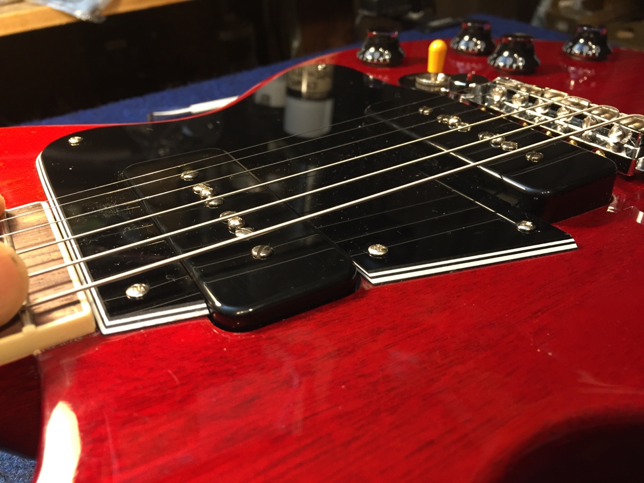 弦が磁力に引っ張られてうなってしまい、オクターブチューニングができないのでピックアップを下げました。