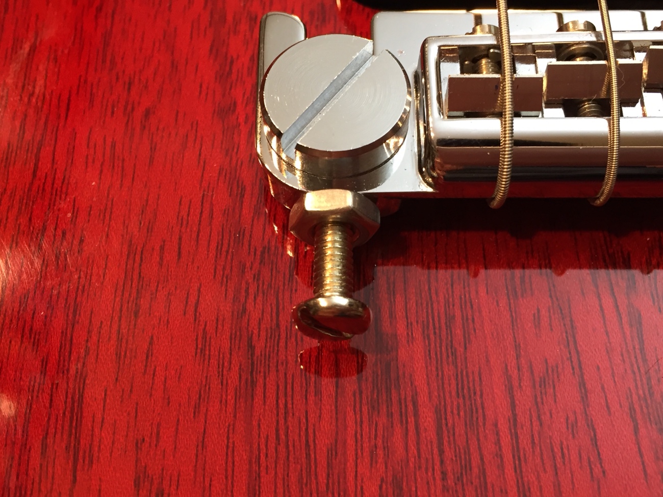 弦交換の度にブリッジの位置が動かないように、追加したロックナットを固定します。