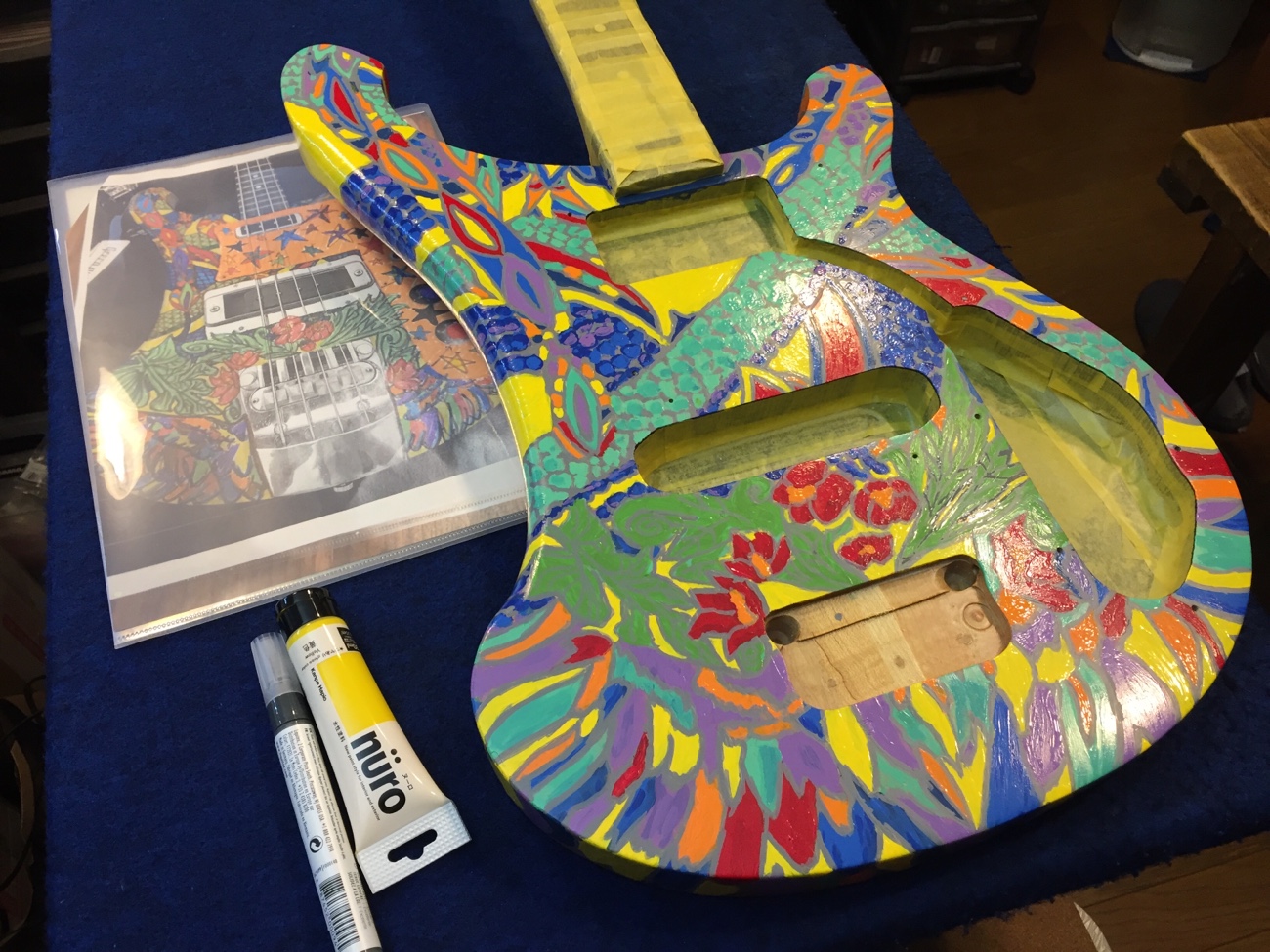 黄色とペン入れ【グレコのリッケンバッカー風ベースの改造ー30】 投稿日時: 2025年10月8日 投稿者: admin 花の中を黄色で塗っていきます。 線画を塗り足してほとんど完成です。 トップコートを吹き付けたいです。 Tweet