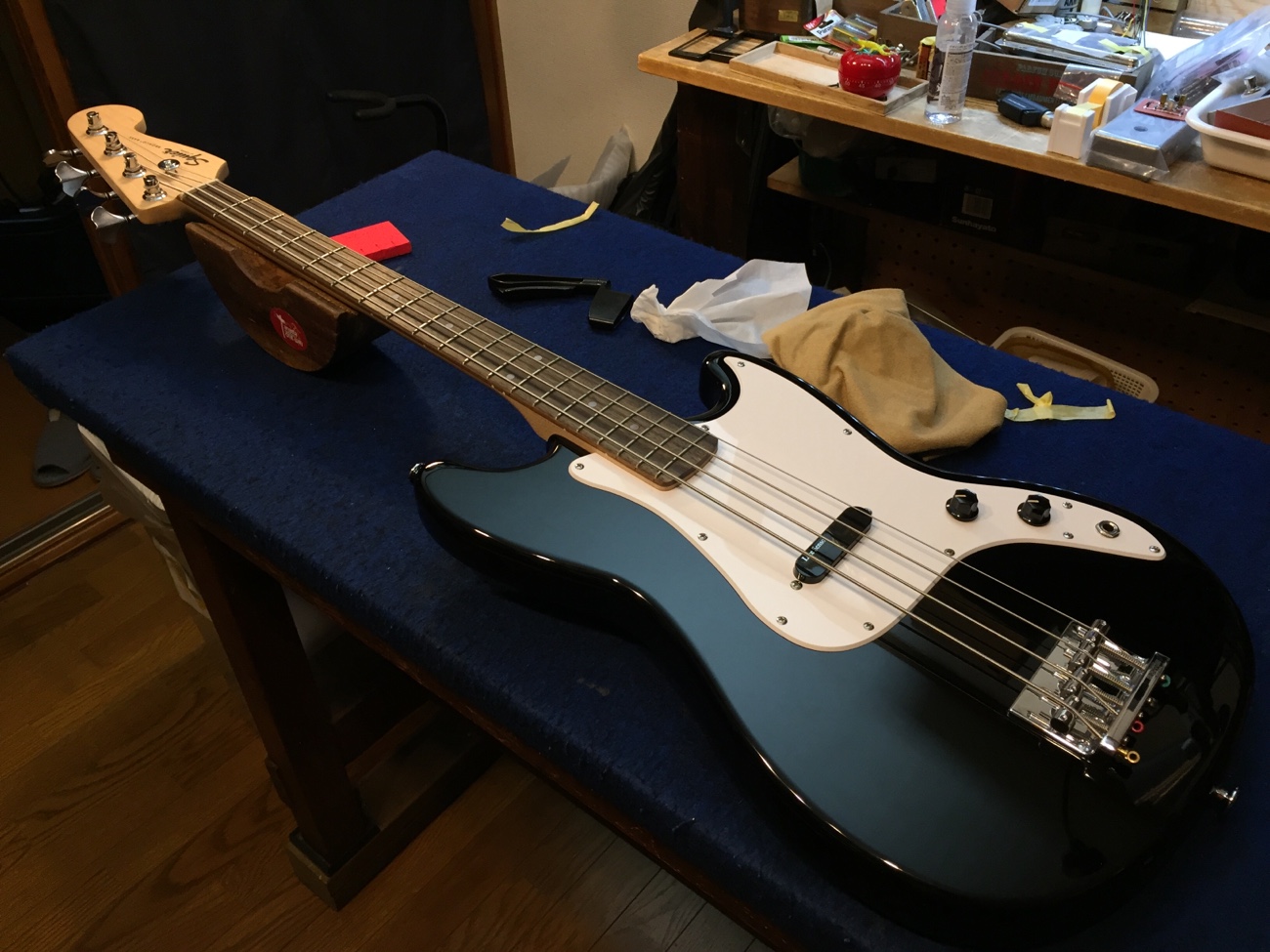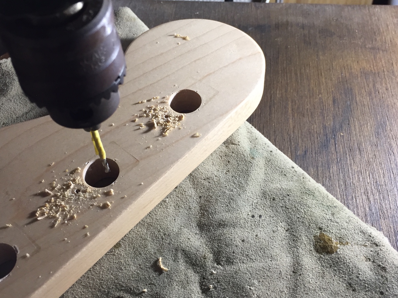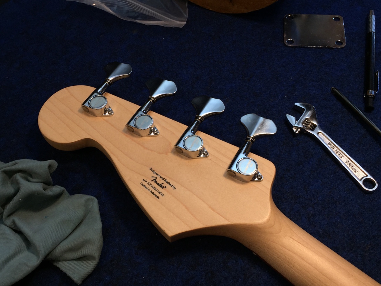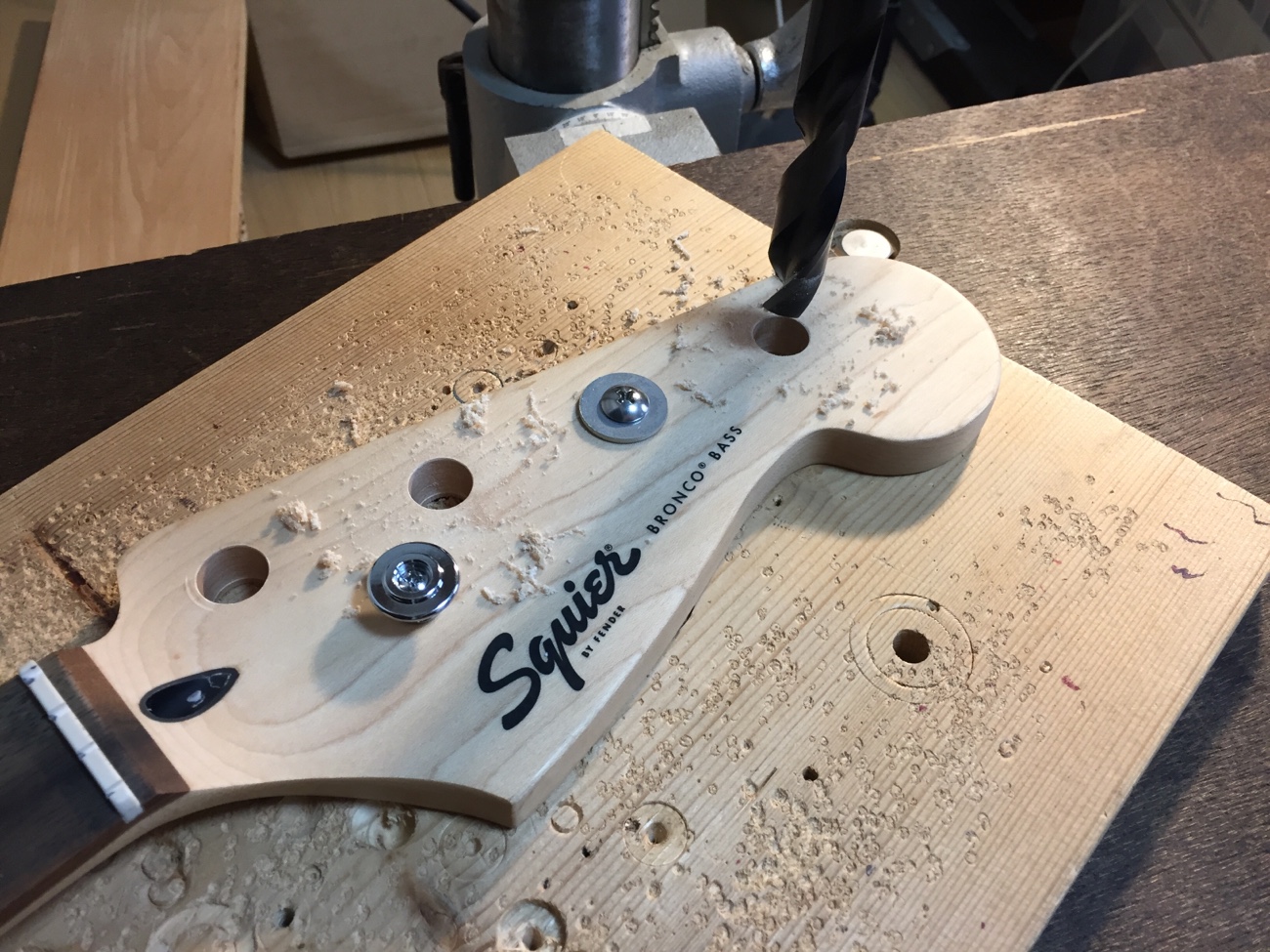 ドリルビットを買った【Bronco bassのペグ交換とノイズ処理-6】 投稿日時: 2025年10月8日 投稿者: admin 持っていたビットでは太さが微妙に足りなかったのでドリルビットを買い足しました。 改めてペグポスト穴を拡げていきます。 新しいネジ穴をあけます。 取り付けられました。 ちょっとヘッドが軽くなりました。 配線を戻していきましょう。 これで完成です。 Tweet