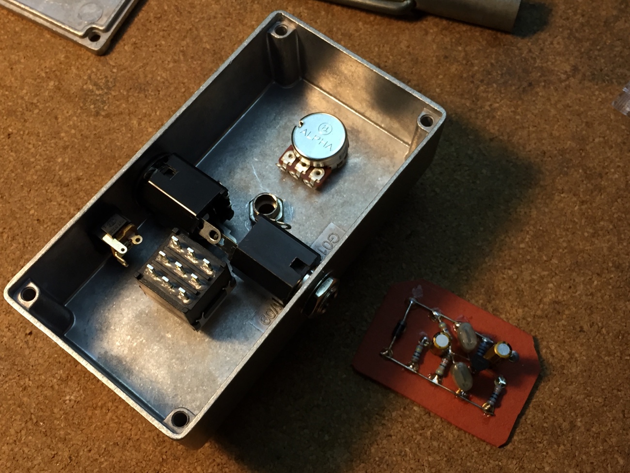 ポットの穴あけ 投稿日時: 2025年10月8日 投稿者: admin たまに進むケンタです。 ポットの穴をあけてみます。 手が入りにくいから小さいツマミにしようかと思っていましたけれど、意外と同じツマミを3個並べても良さそうです。 DCジャックは上辺に付けられそうにないですね。 入力ジャックの隣にしましょう。 Tweet