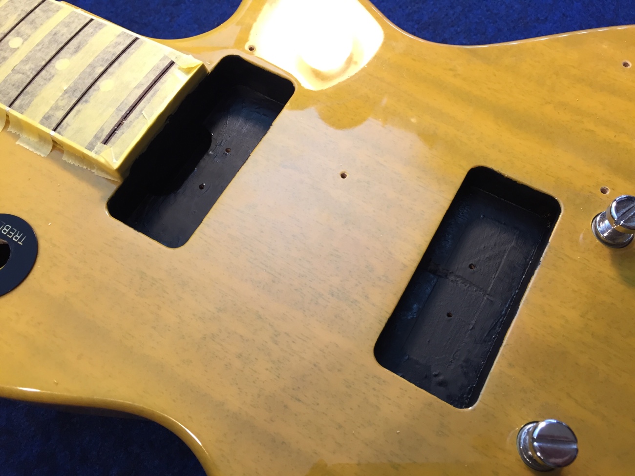 エスカッションの取り付け【Orvilleのレスポールスタンダードの改造-12】 投稿日時: 2025年10月17日 投稿者: admin エスカッションを取り付けて行きましょう。 キャビティはそこそこネックのセンターラインに対称にあいているようなので、キャビティに合わせて取り付けます。 ネジ穴をあけました。 なかなか良いのではないでしょうか。 Tweet