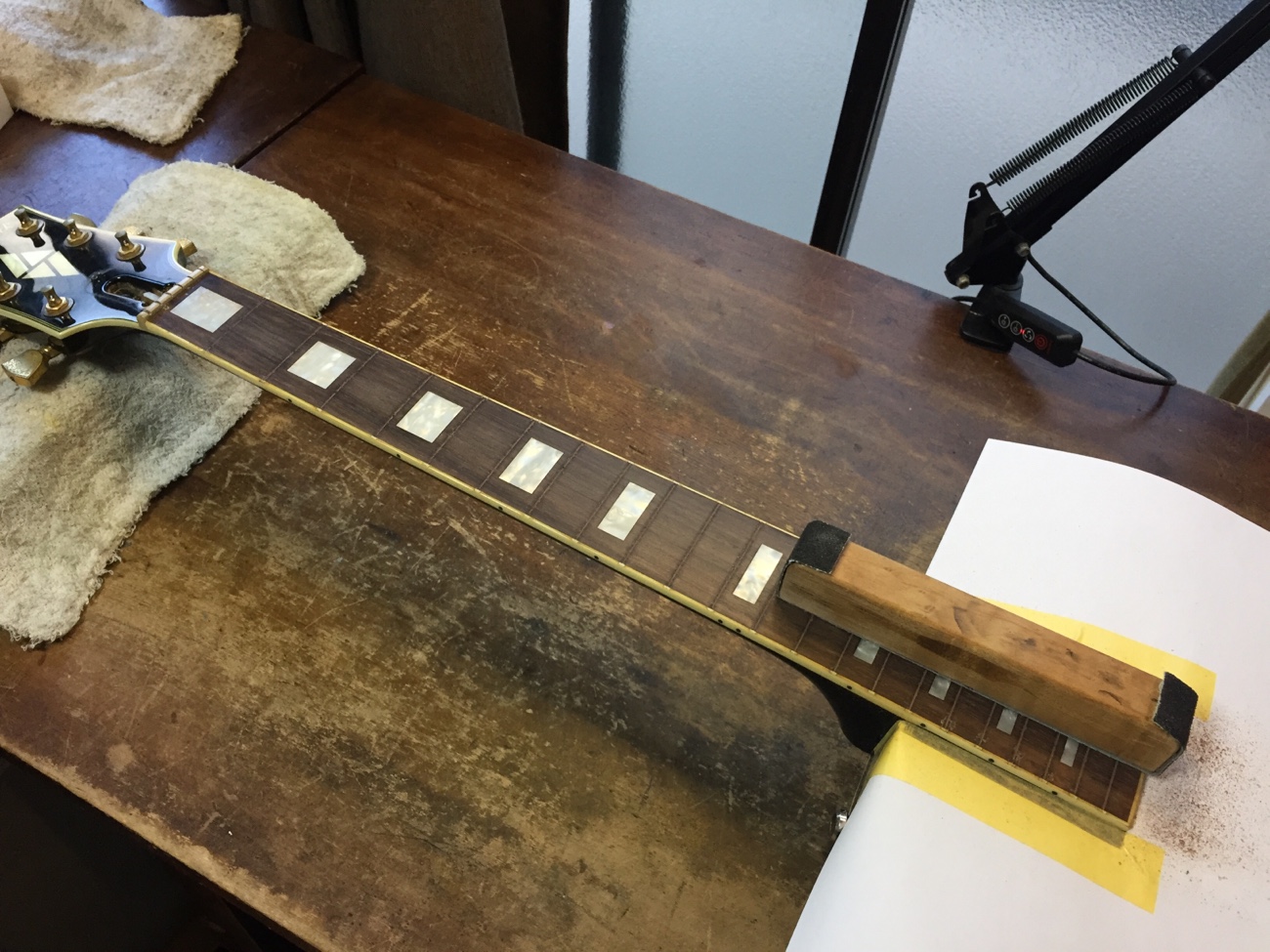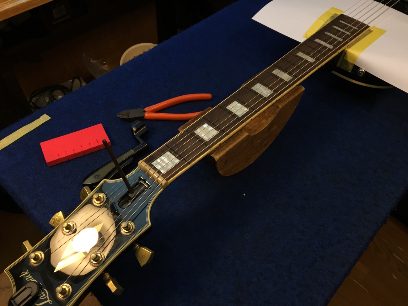 1弦側のヒールが落ちくぼんでいましたけれど6弦と同じ高さになりました。