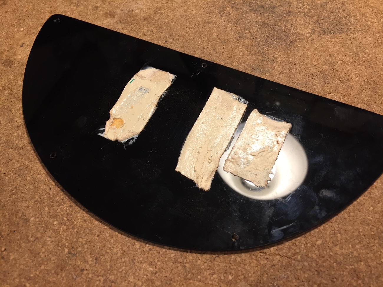 裏蓋にアルミシートを貼る【Kiihlの5弦フレットレスベースの改造-21】 投稿日時: 2025年11月20日 投稿者: admin 裏蓋にアルミシートを貼っていきます。 基板を貼り付けてあった粘着テープが残っています。 カーペット用でしょうか。 ネチャネチャです。 パーツクリーナーできれいに粘着を剥がしました。 アルミシートを貼り付けました。 Tweet