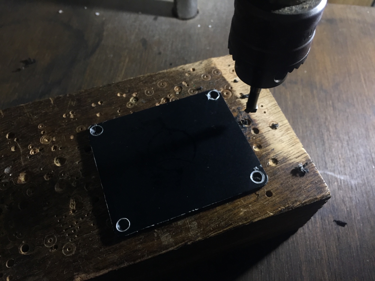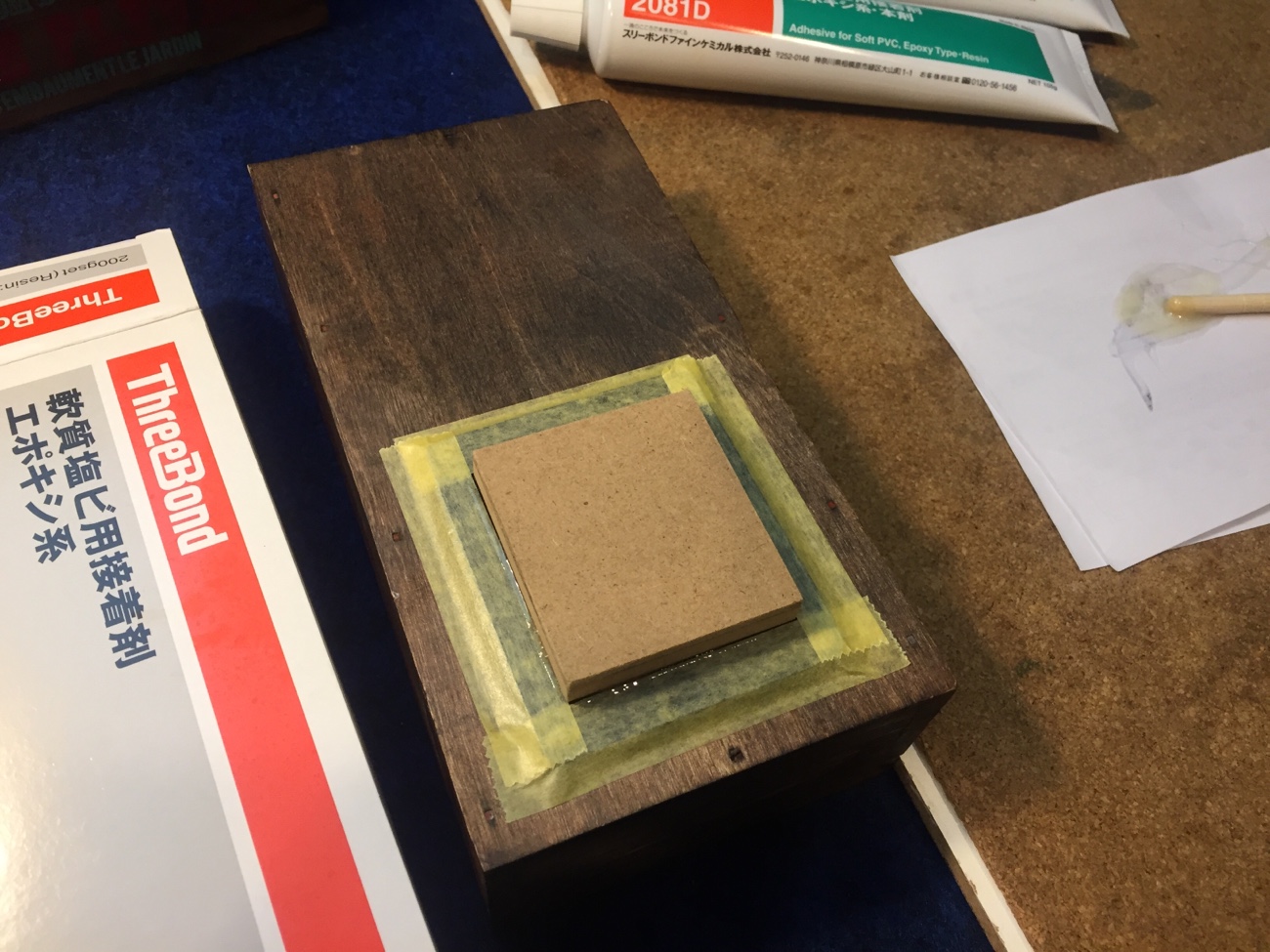 BB-04互換のバッテリーボックス裏蓋の製作【Kiihlの5弦フレットレスベースの改造-25】 投稿日時: 2025年11月27日 投稿者: admin ネジ穴をあけて面取りします。 これでBB-04Wを取り外したところにそのまま取り付けられる裏蓋が完成しました。 この裏蓋、商品にしても良いかもしれません。 BB-04って断線することがけっこうあって、普通のスナップに戻したい人がいるんですよね。 合板を貼り付けます。 塩ビから可塑剤が出てきても剥がれにくいように、塩ビ用のエポキシ接着剤で貼りつけました。 Tweet