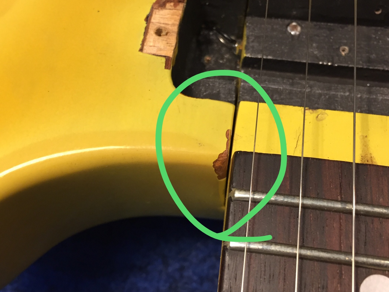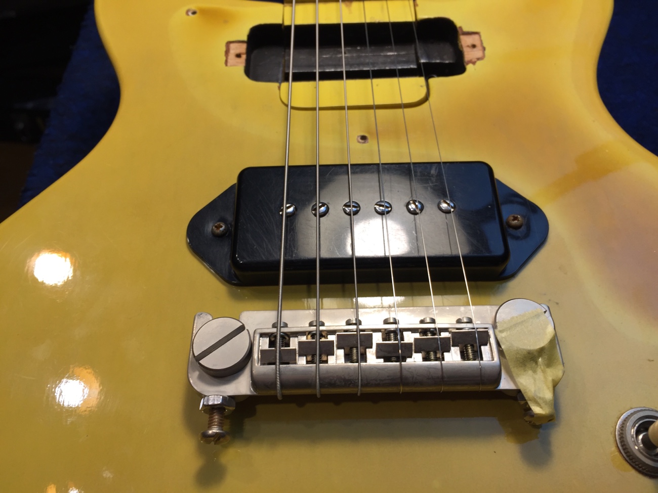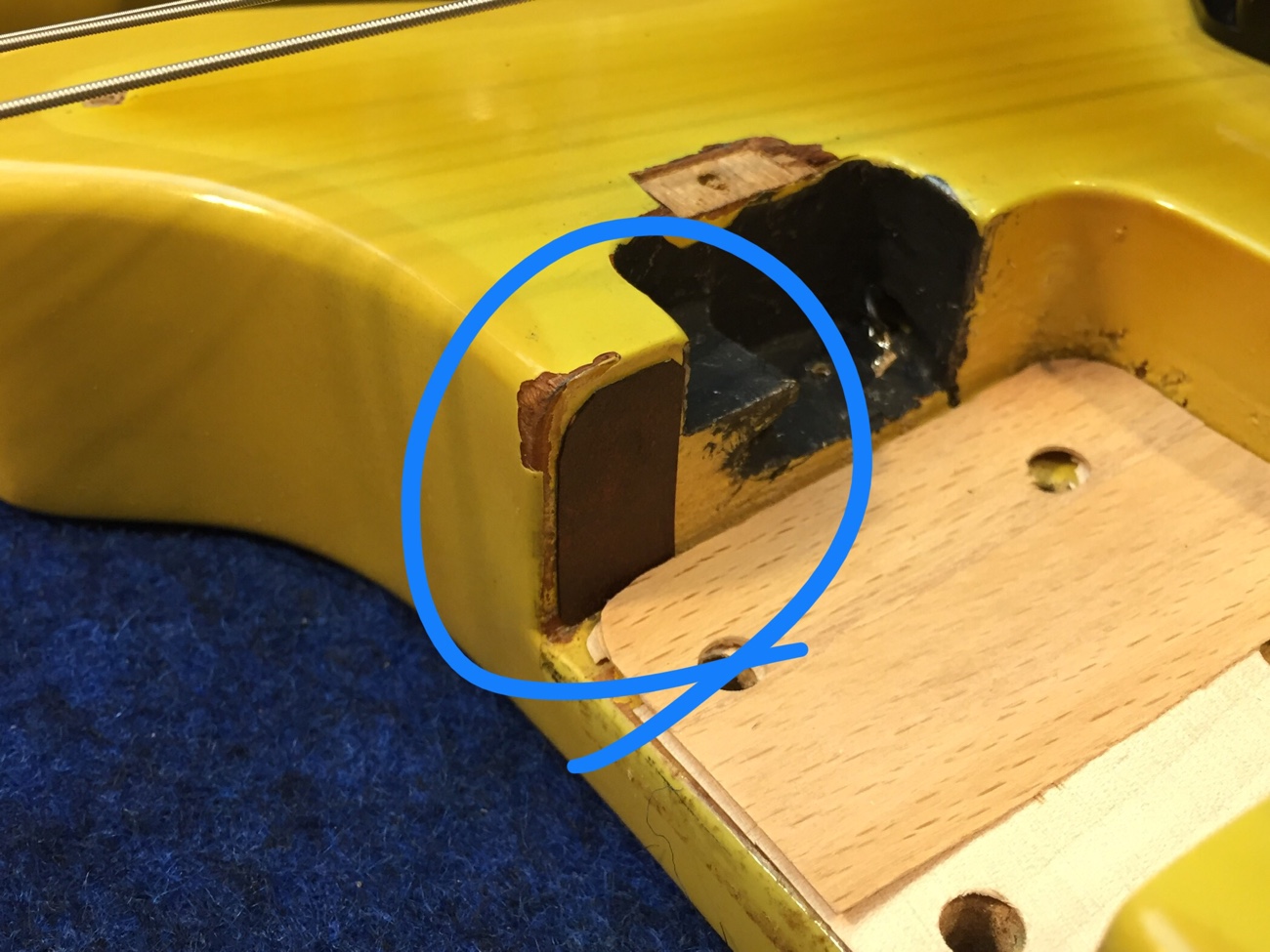 シムの追加【Burnyのレスポールジュニアタイプのチューンナップ-47】 投稿日時: 2025年11月27日 投稿者: admin ネックの角度を調整していきます。 ポケットのいろいろな部分の隙間を調べています。 ネックがどっちに行きたがっているのかが分かってきました。 ここに隙間を作って上げるとヘッドが6弦側に振られて、弦が良い位置に来るようです。 ここでネックを受け止めます。 銅箔テープに導電塗料を塗って分断されているフロントピックアップキャビティの導電塗料をつなぎました。 これで上手くいくと良いですね。 いよいよ完成が近づいてきました。 Tweet