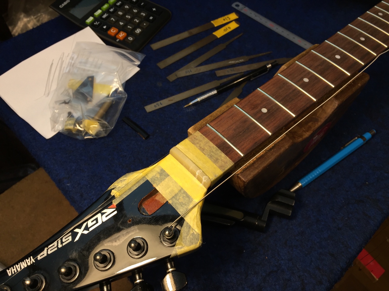 ナットに弦溝を作っていきます。