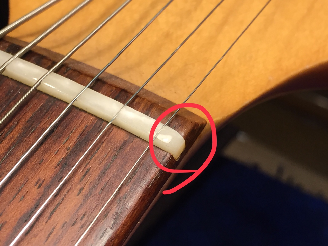 弦から手を離しているときと、弦に触っているときで同じくらいになるところまでは減っています。 ポールピースを触ったときにシールドケーブルを引き抜いた時みたいなノイズがでることもありません。 これで弾いてみてもらいましょう。