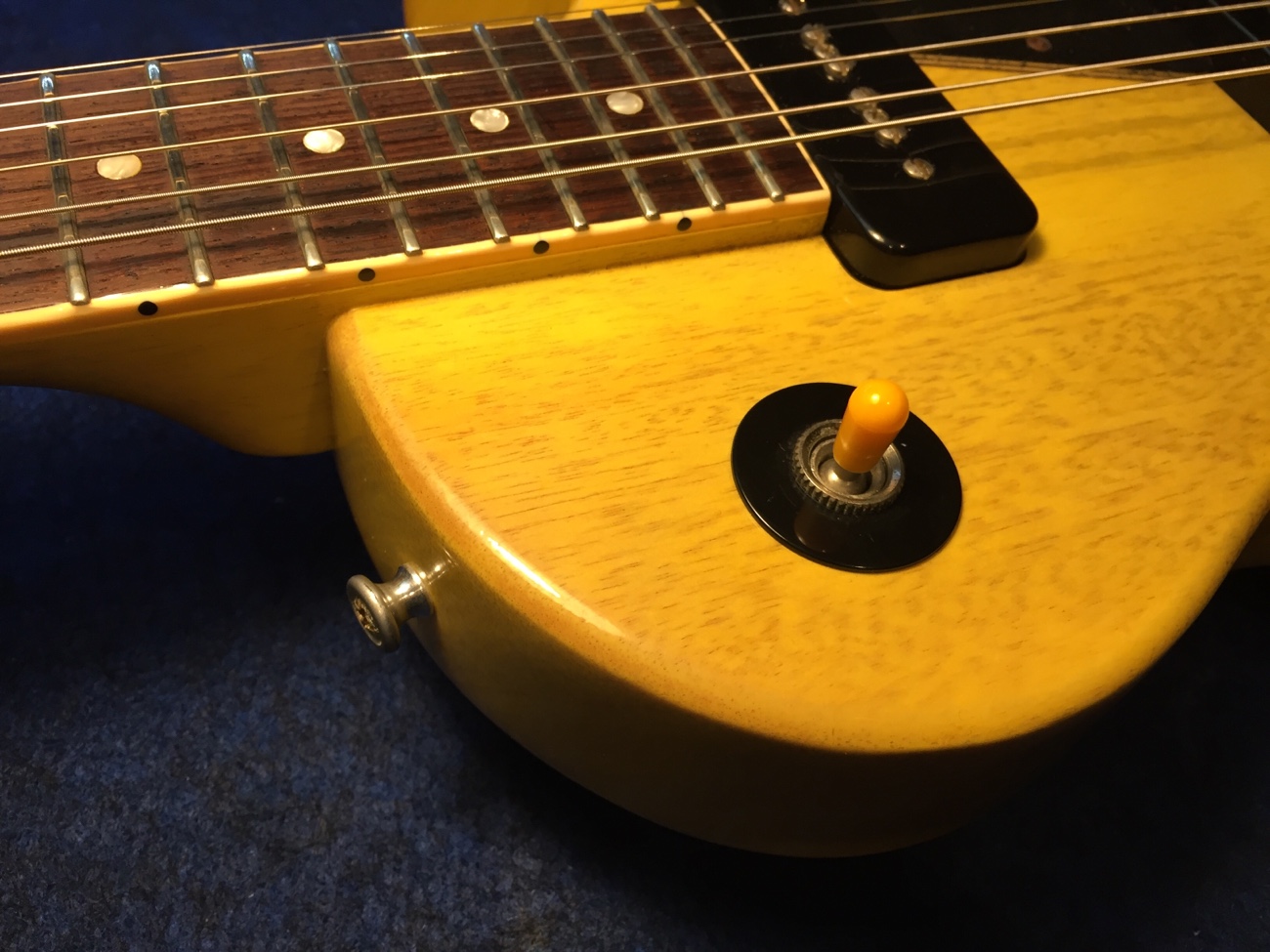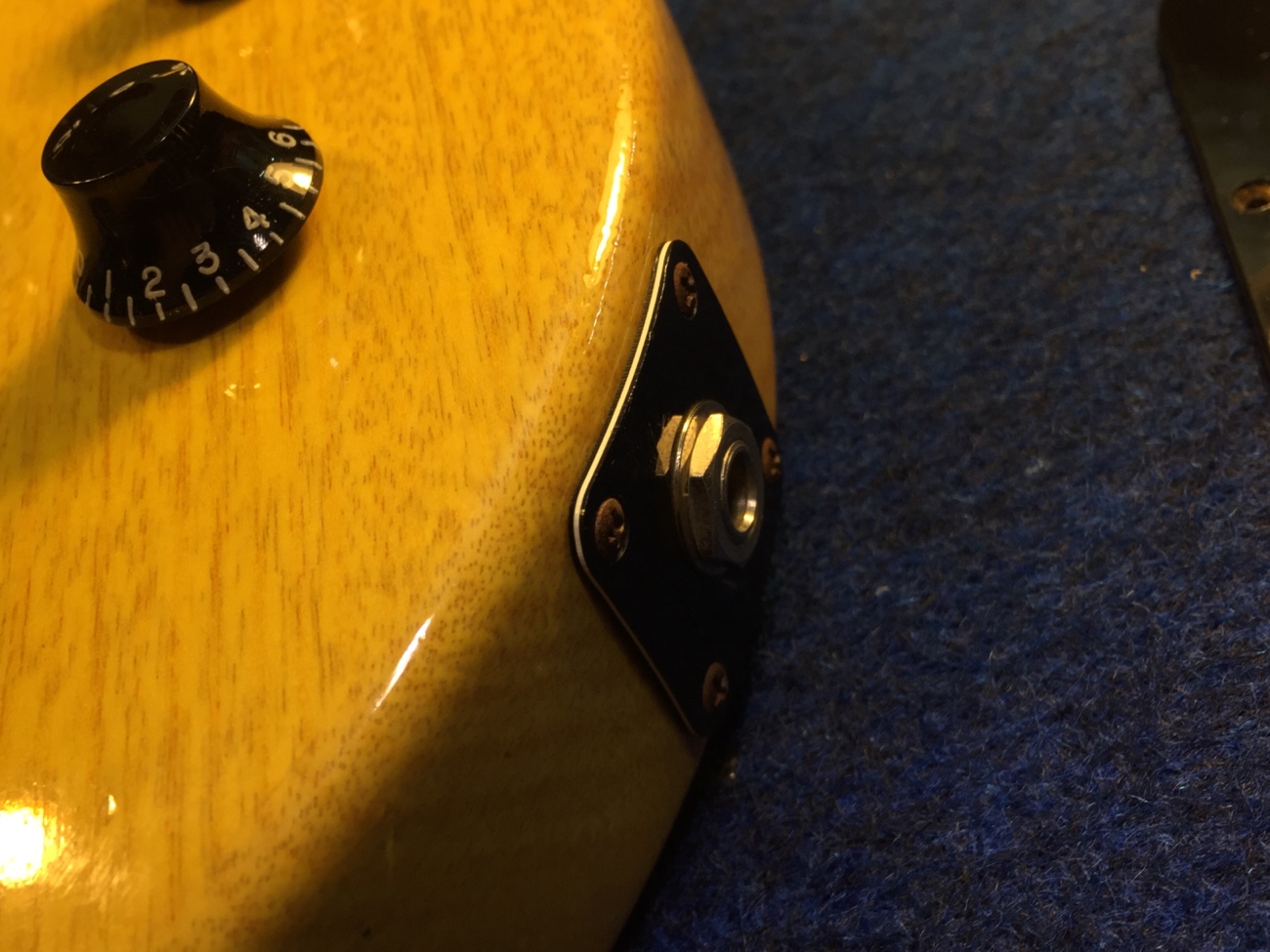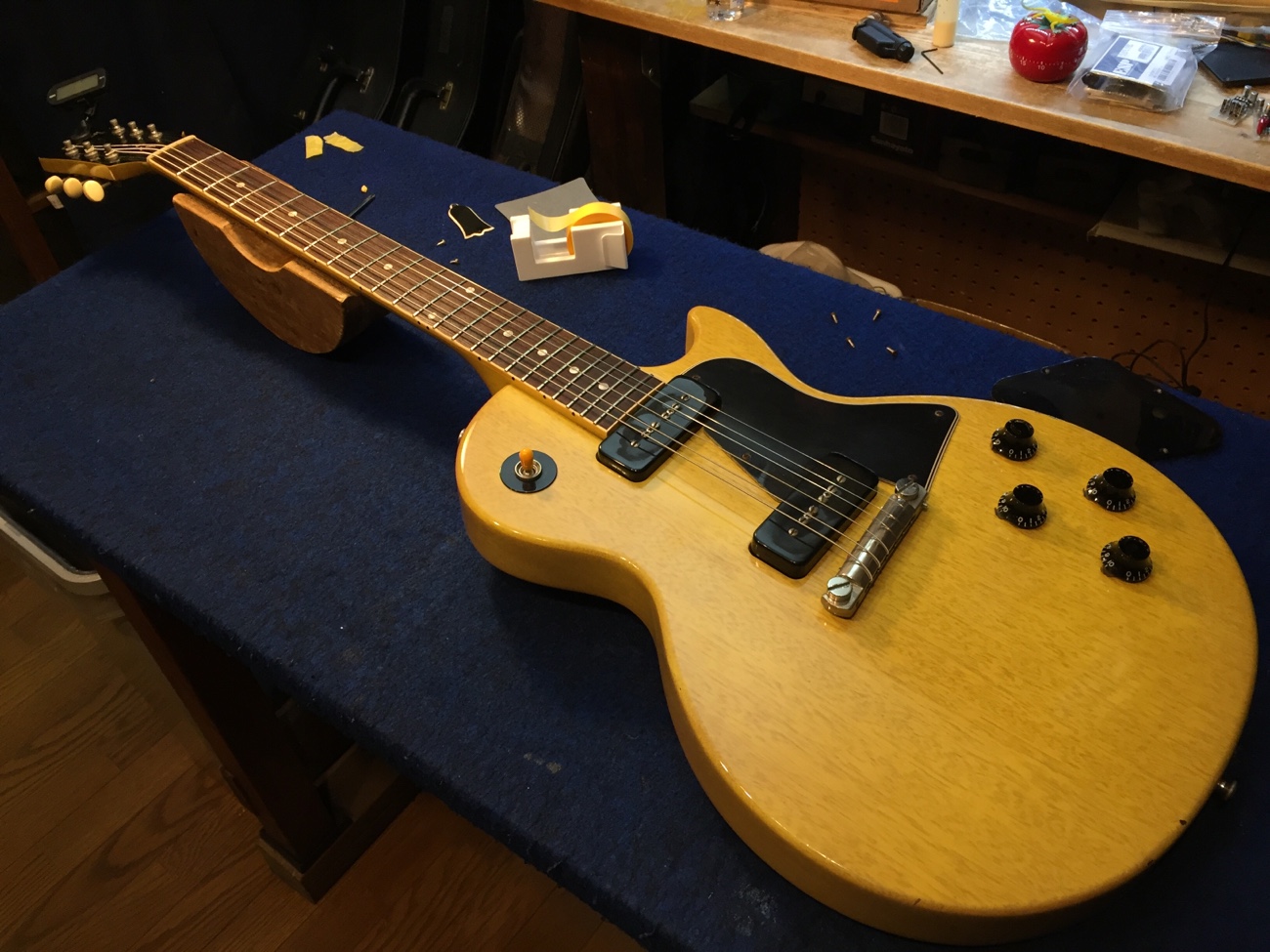 ポジションマークが膨らんでいるところがあります。 ヒーター修正の熱のせいとかでしょうか? フレット交換のついでに全体的に修理しましょう。