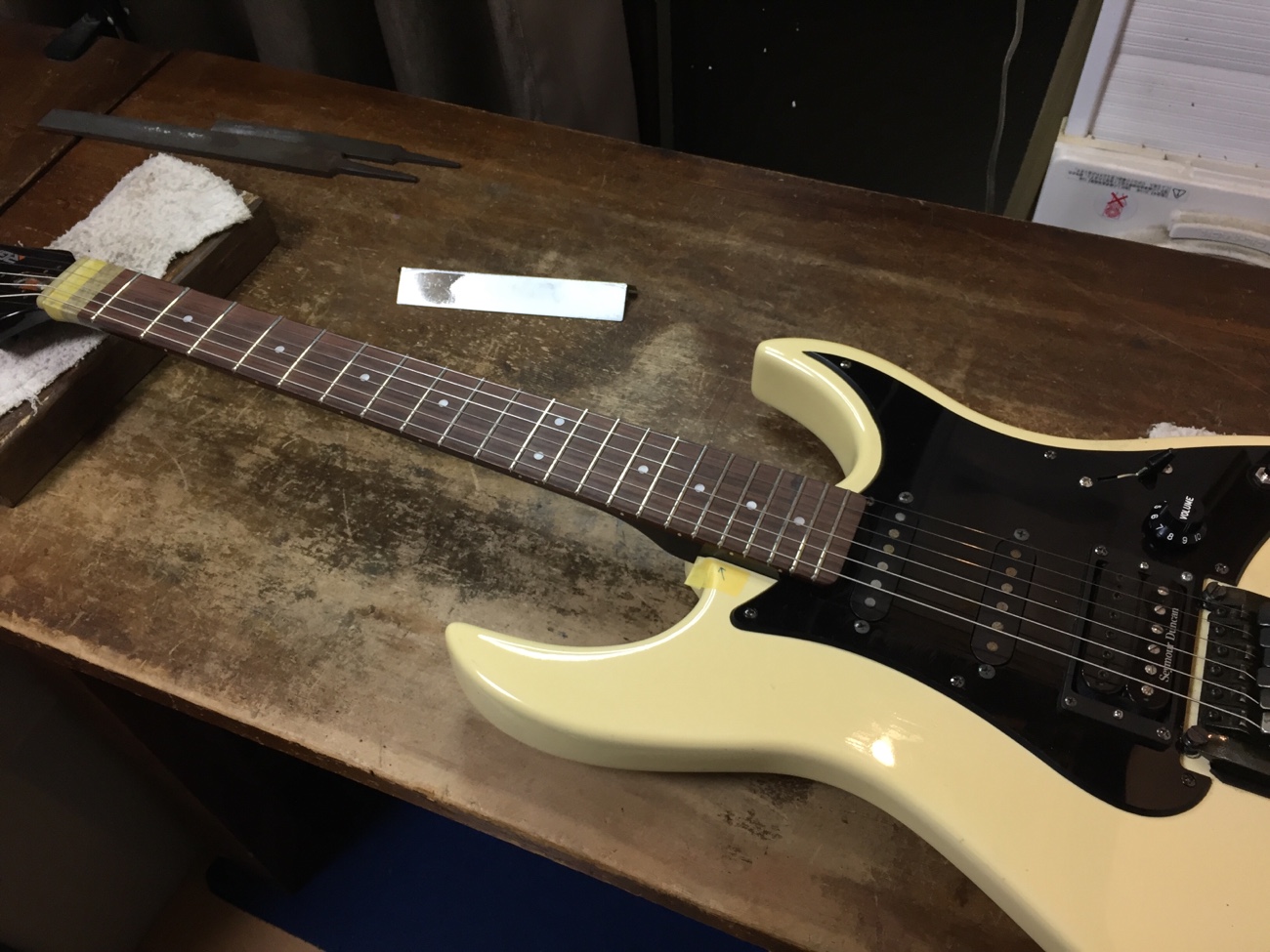 フレットをすり合わせし始めたのですが、反り具合が微妙に気になります。