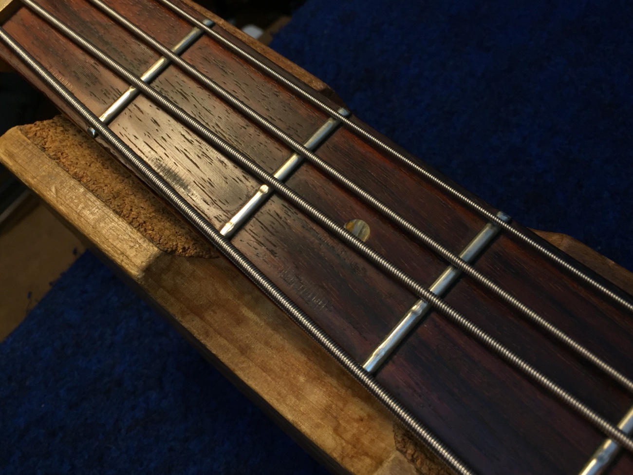 はっきり原因は分かりませんが、ナットの弦溝を作る上で、フレットの頂点がきれいに並んでいることが望ましいので、フレットのすり合わせもさせてもらいます。