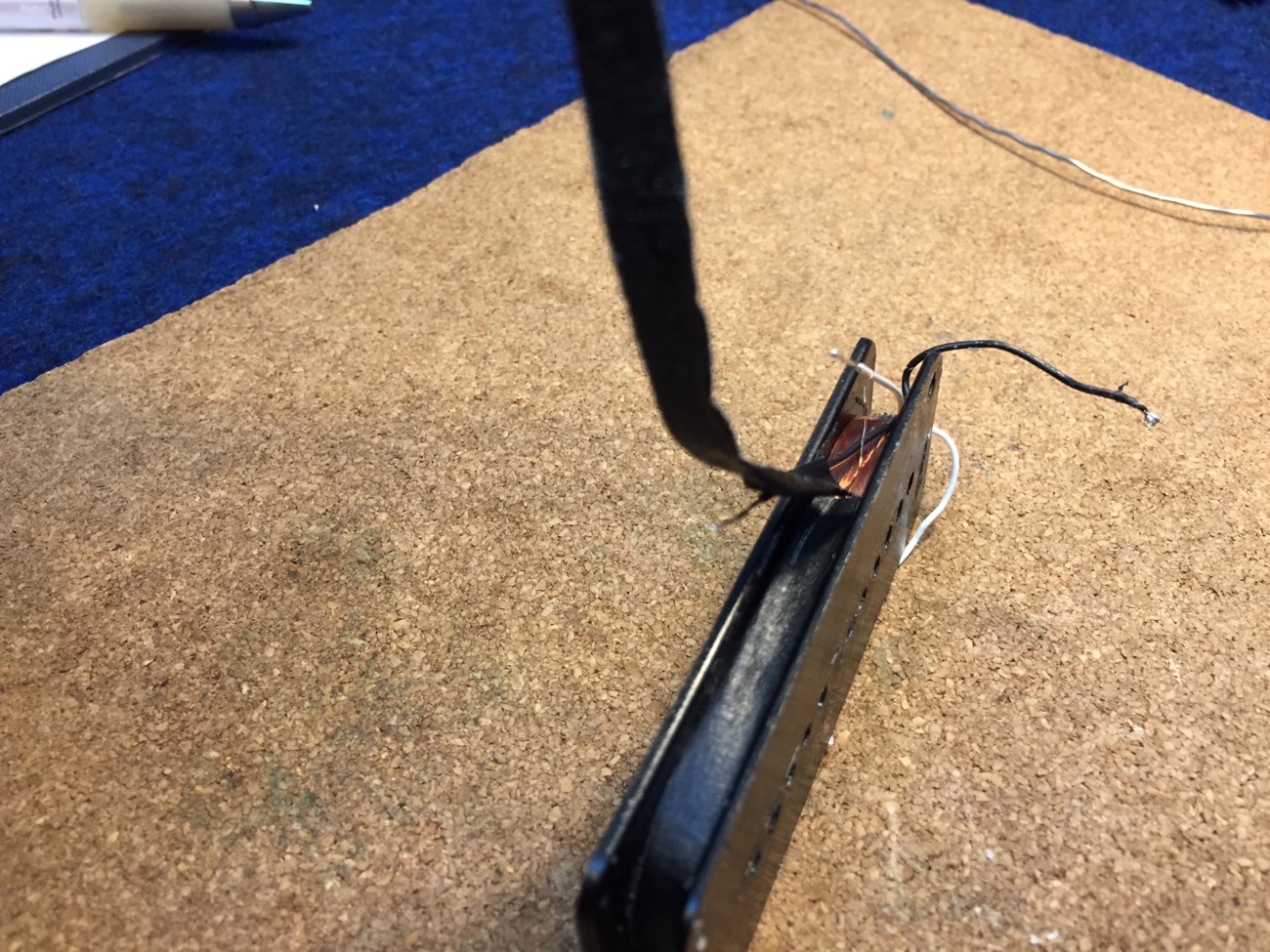 エレキギターでいかにしてアコースティックな音色を出すか、みたいなテーマってありますよね。 そういうピックアップコイルを巻きたいところです。 このギターはミックスで使うことが多いと思うので、ノイズキャンセルするように作ります。