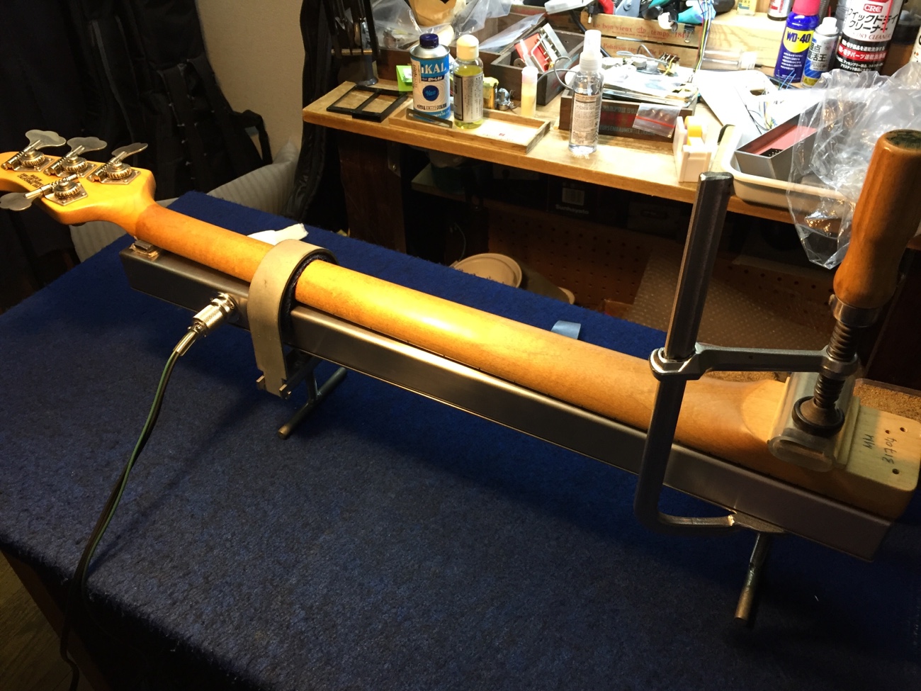 全体にヒーターをあてる【スターリン4Hのフレット交換-8】 投稿日時: 2025年9月29日 投稿者: admin トラスロッドの負担を軽減するために、ハイポジションだけでなくネック全体にも逆反り方向へ曲げるためのヒーター修正を行います。 Tweet
