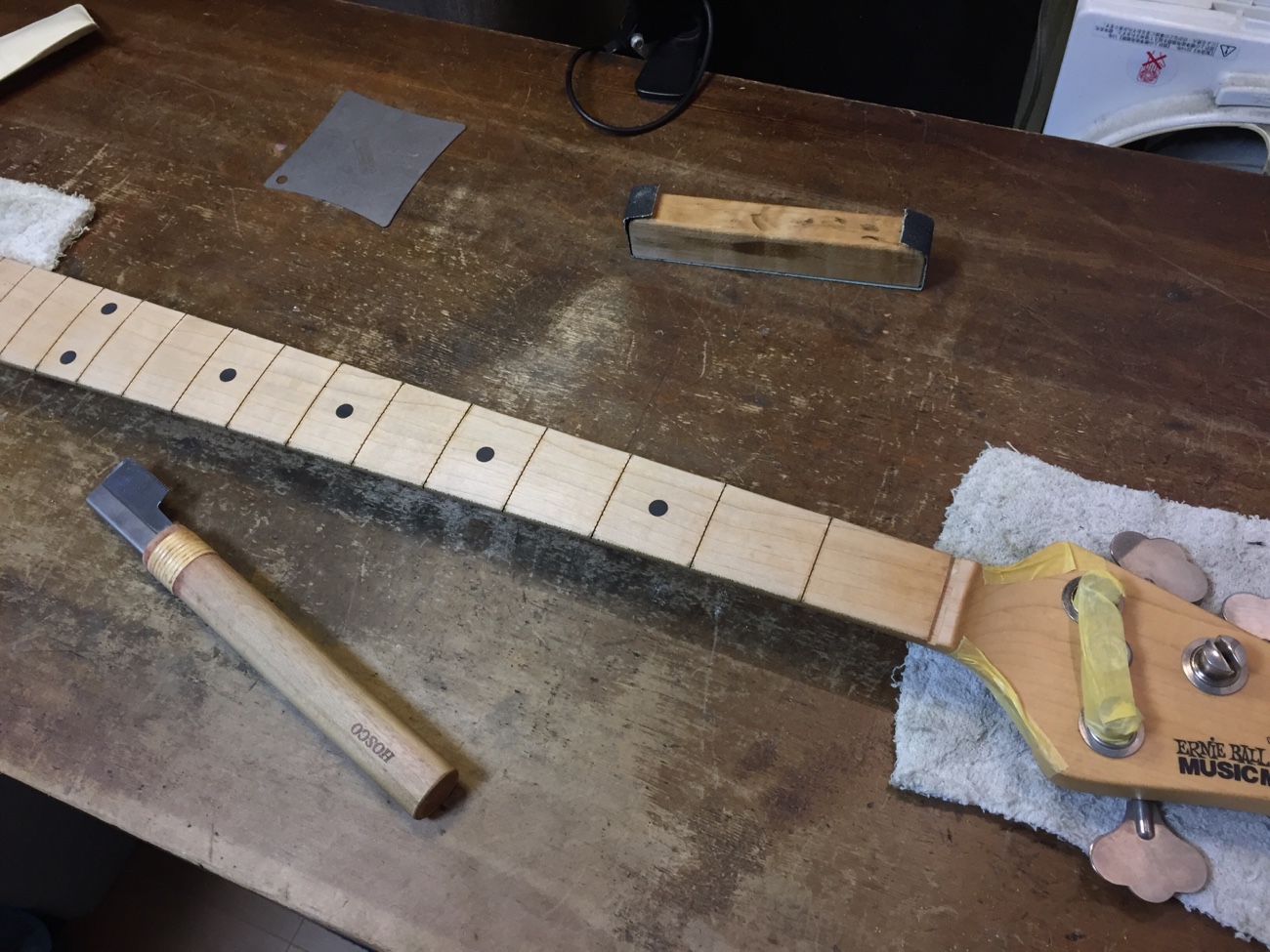指板研磨が完了【スターリン4Hのフレット交換-14】