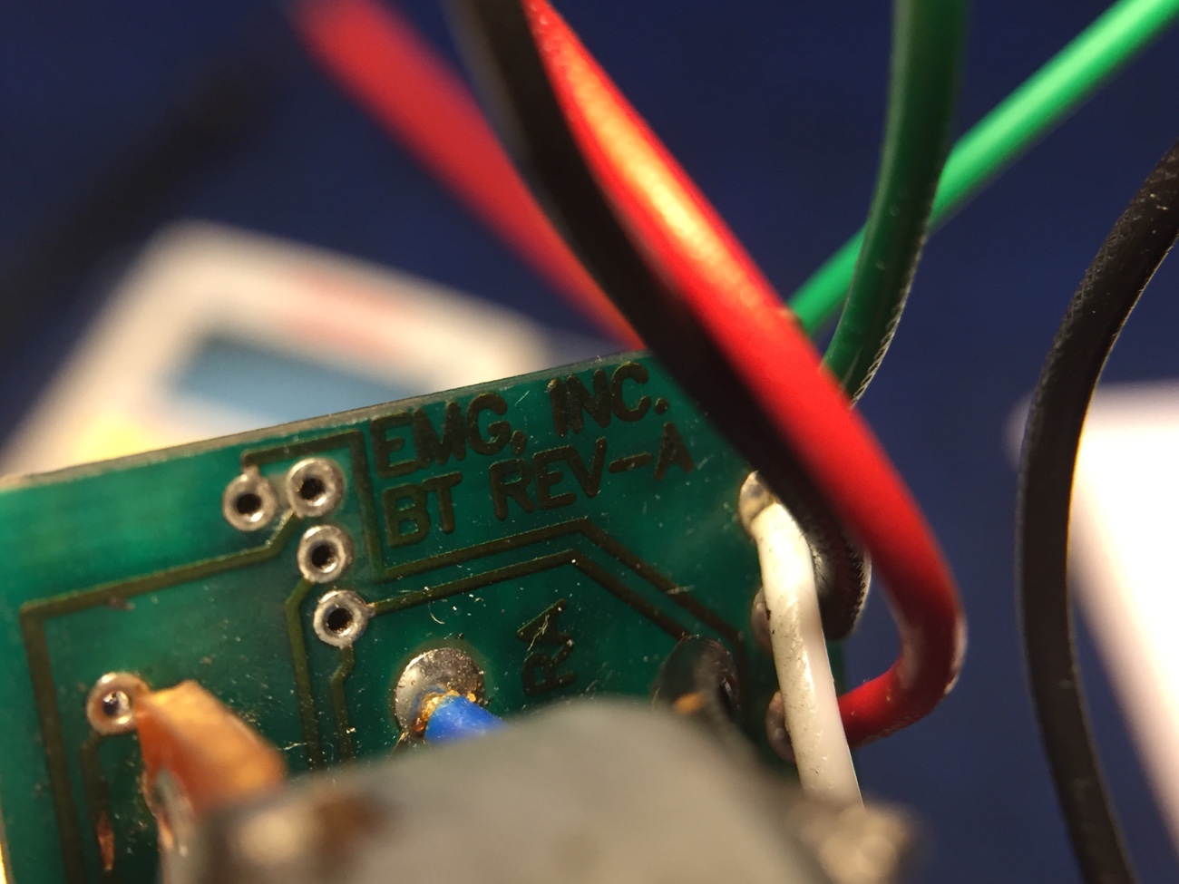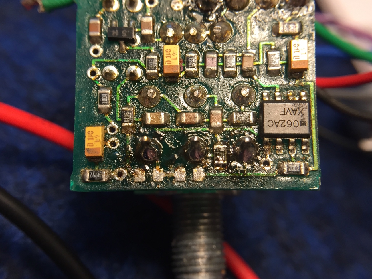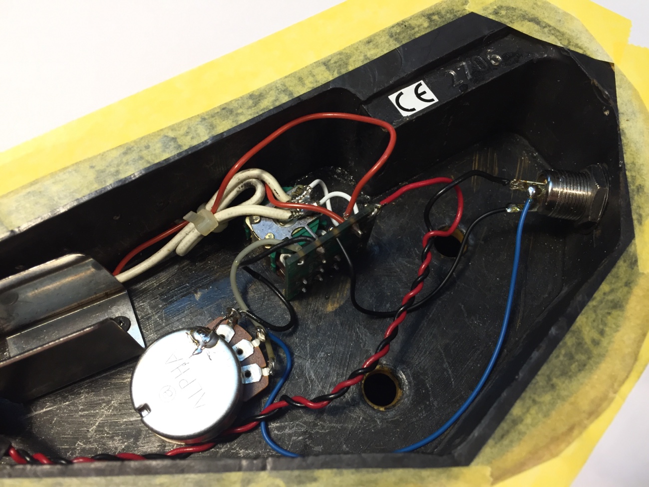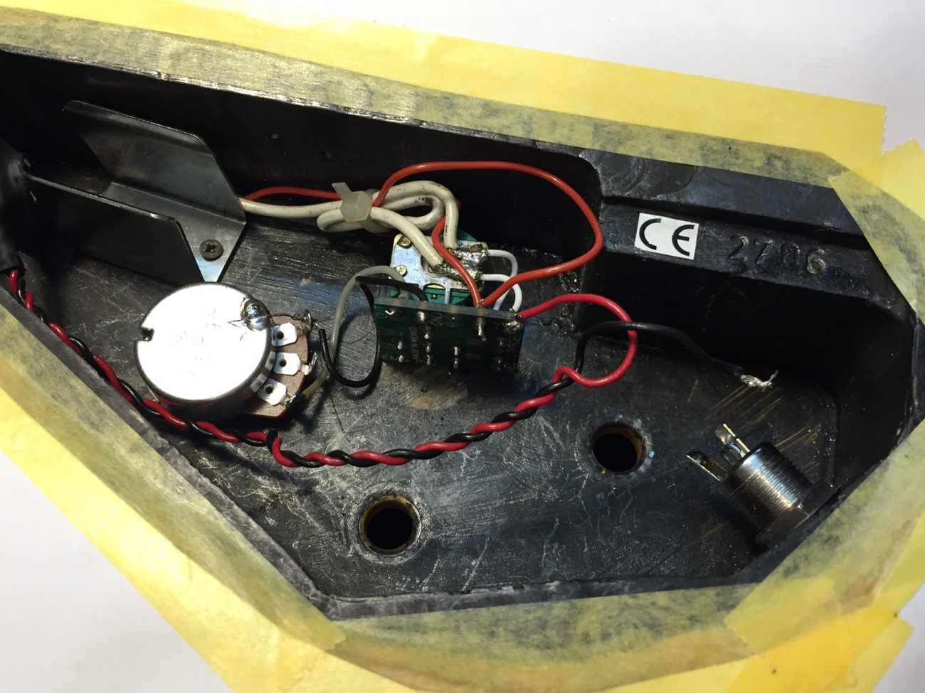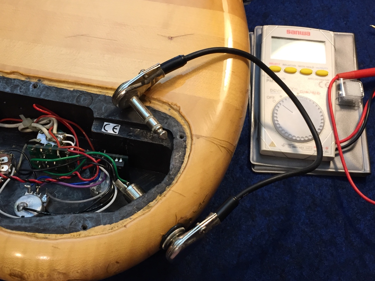 というわけでトラブルシューティングの仕上げにピックアップをジャックに直結してみます↓ 元気いっぱい音が出ているのでイコライザー基板が原因です。