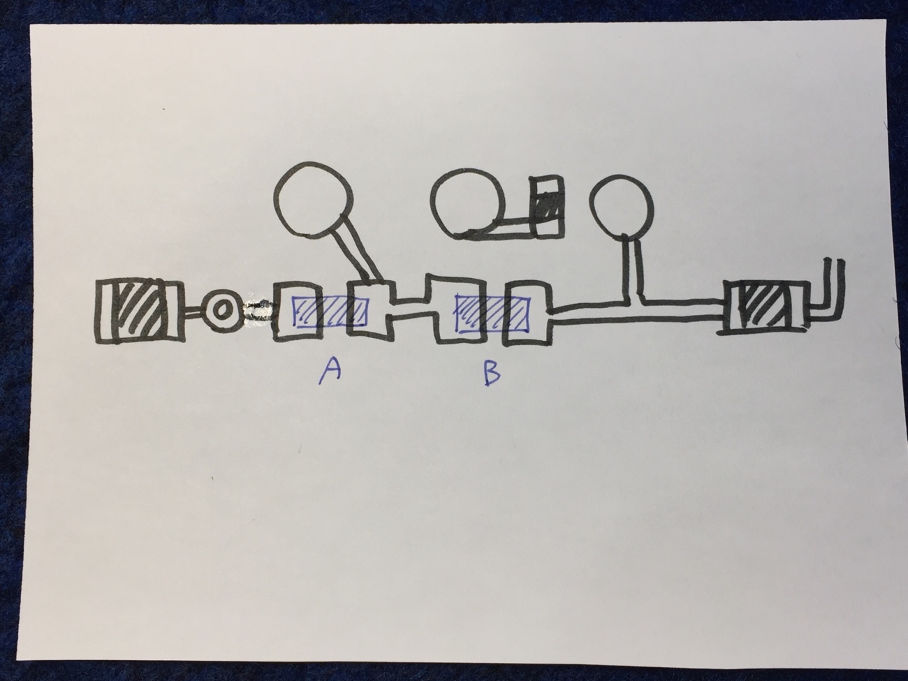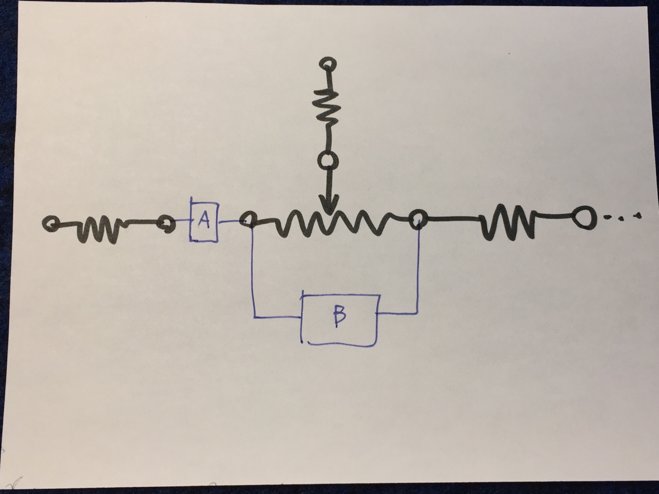 回路図で描くとこういうことになっています↓ 部品Aはおそらく抵抗器、Bはコンデンサだと思います。