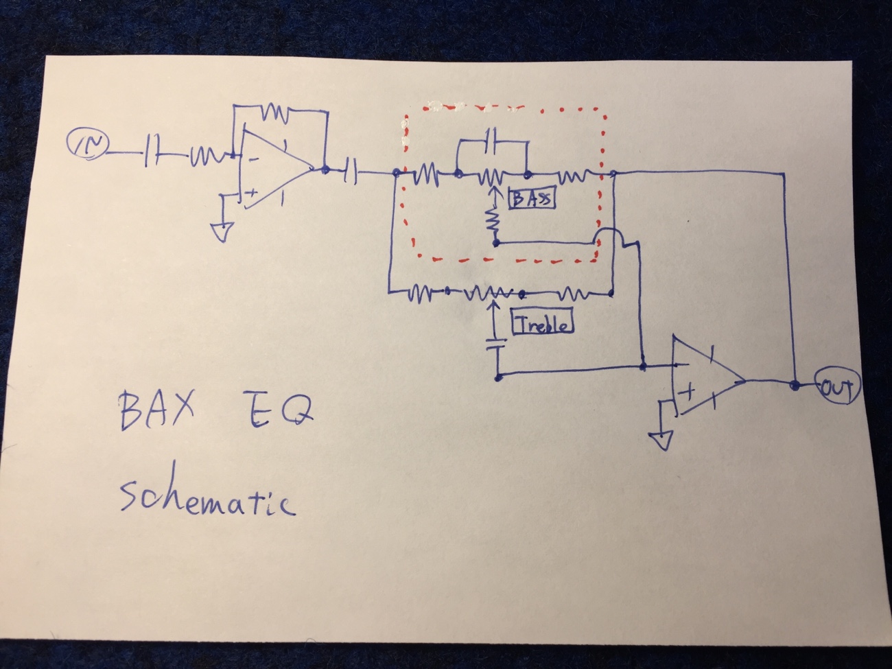 なぜなら、もしこの回路がBAX型のイコライザーだとするとこの赤い点線で囲んだ部分に似ているからです↓ 部品Aがなくなることで低音の通り道がなくなってしまうので、症状とつじつまが合います。