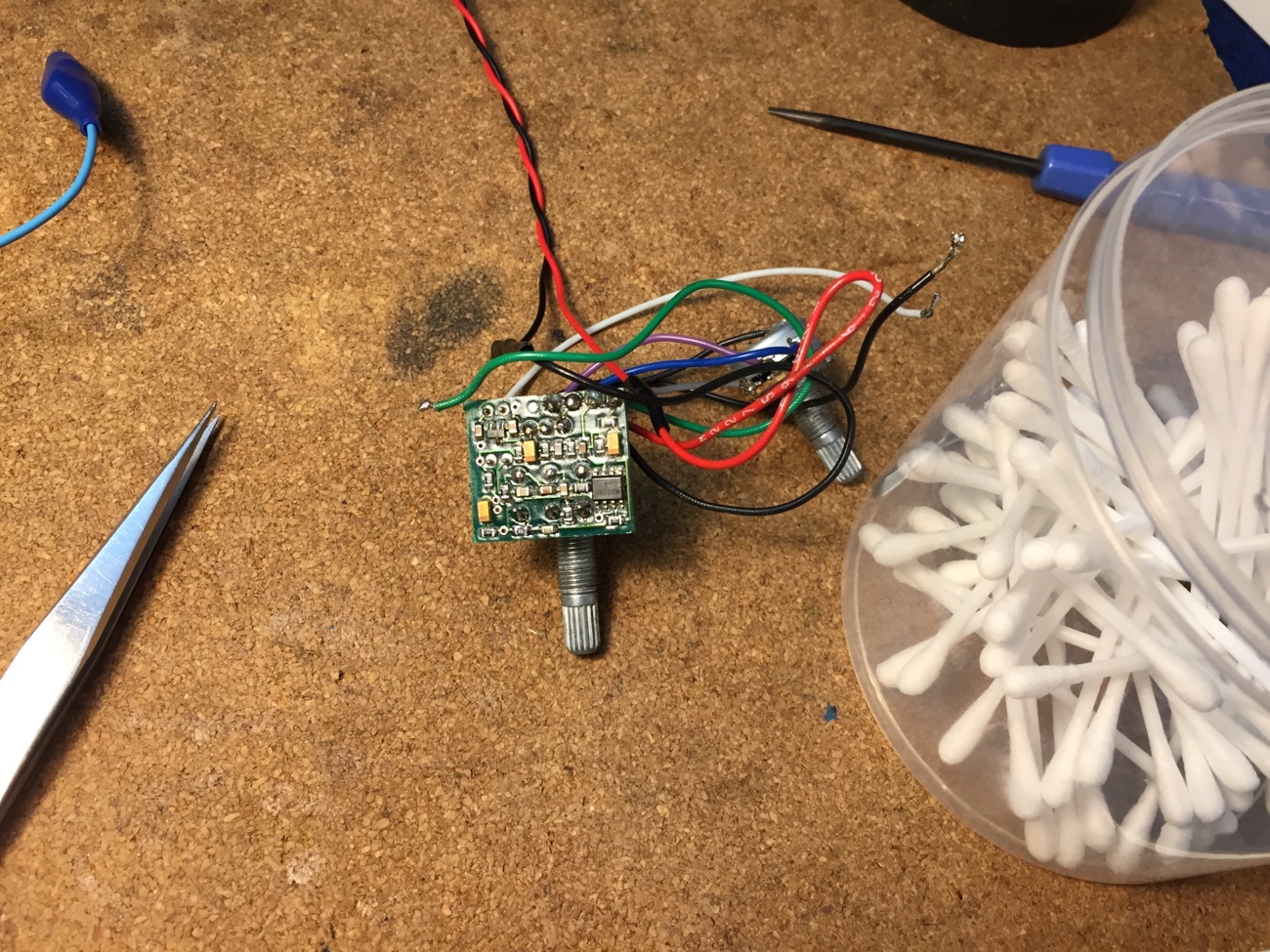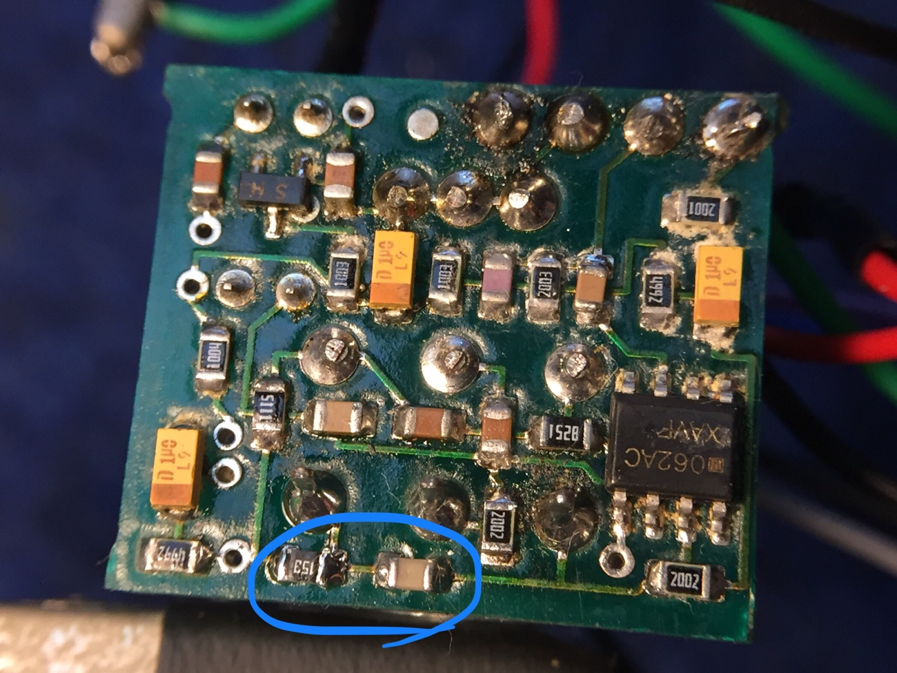 昨日買ってきた15kΩのチップ抵抗を取り付けてから、効く周波数を確認するために取りあえず0.047μFを取り付けてみます。