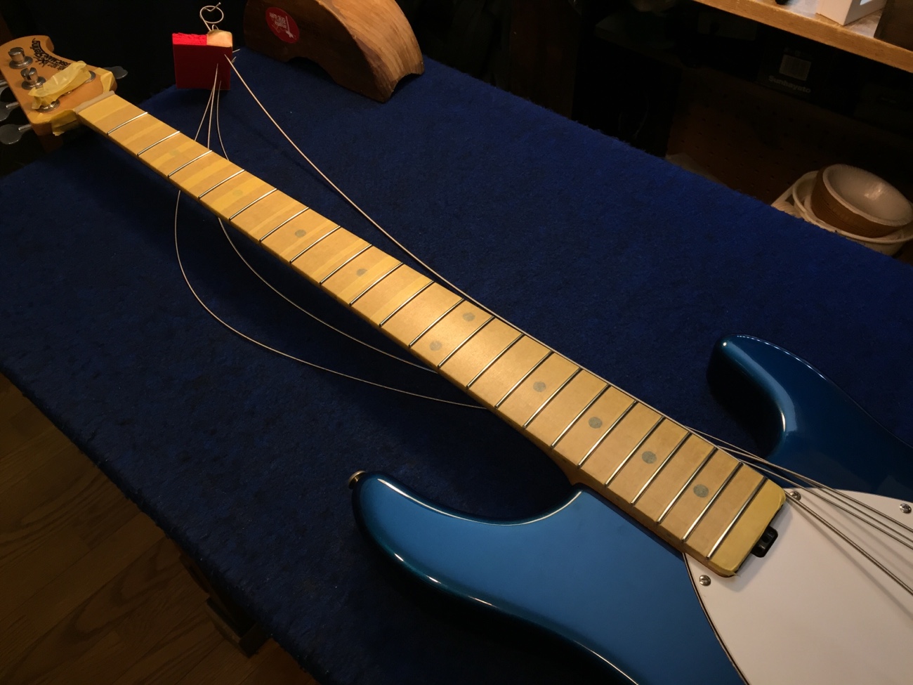 ネックを取り付けてマスキングした【スターリン4Hのフレット交換-19】 投稿日時: 2025年10月23日 投稿者: admin ネックを取り付けてマスキングしました。 ナットを成形して弦溝を作って、フレットのすり合わせを完成させます。 Tweet