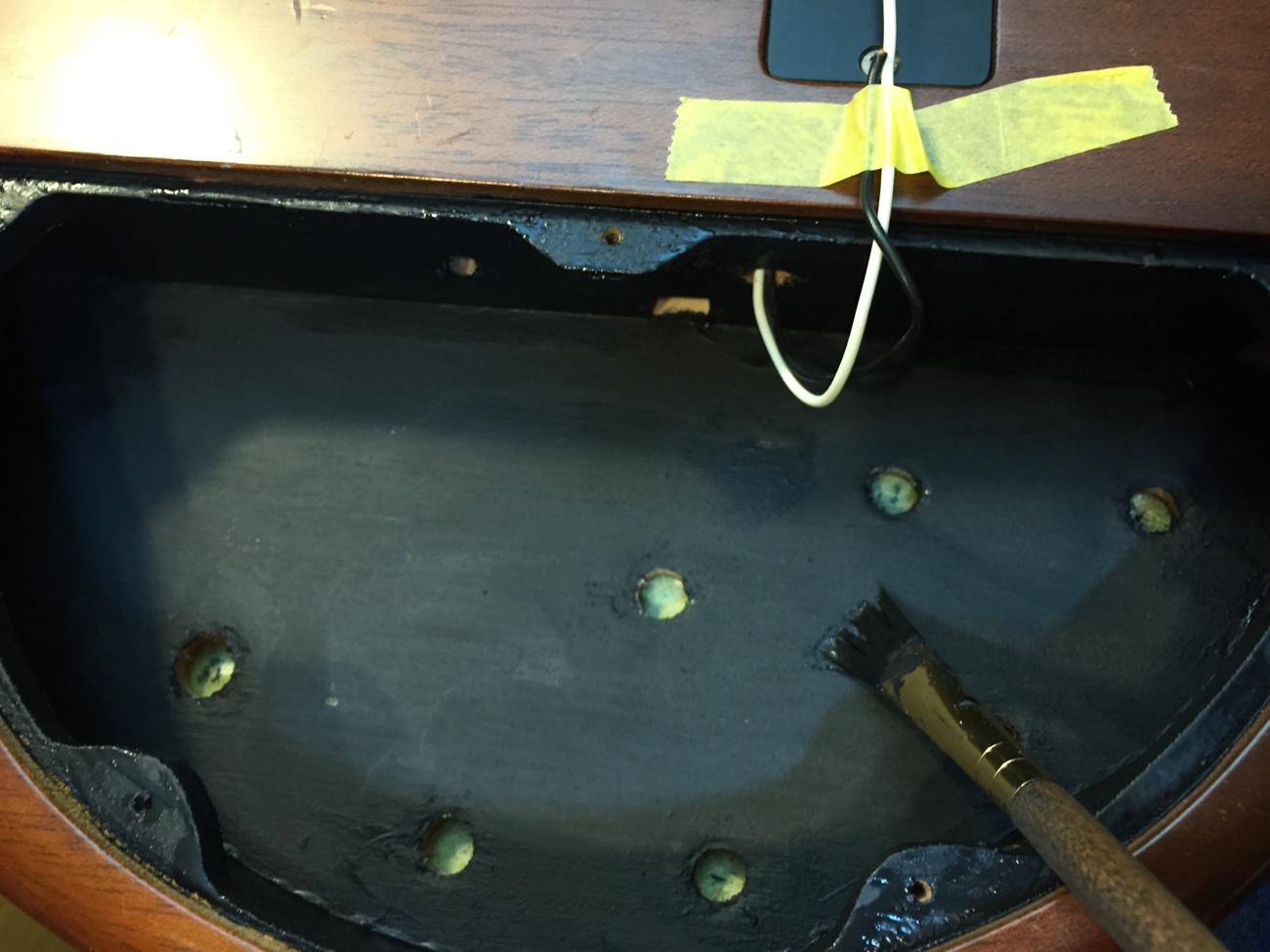 導電塗料の塗布【Kiihlの5弦フレットレスベースの改造-22】 投稿日時: 2025年11月21日 投稿者: admin 導電塗料を塗布していきます。 底面を掃除してから・・・ 木工の毛羽立ちも取っておきます。 まずは1回目。 Tweet