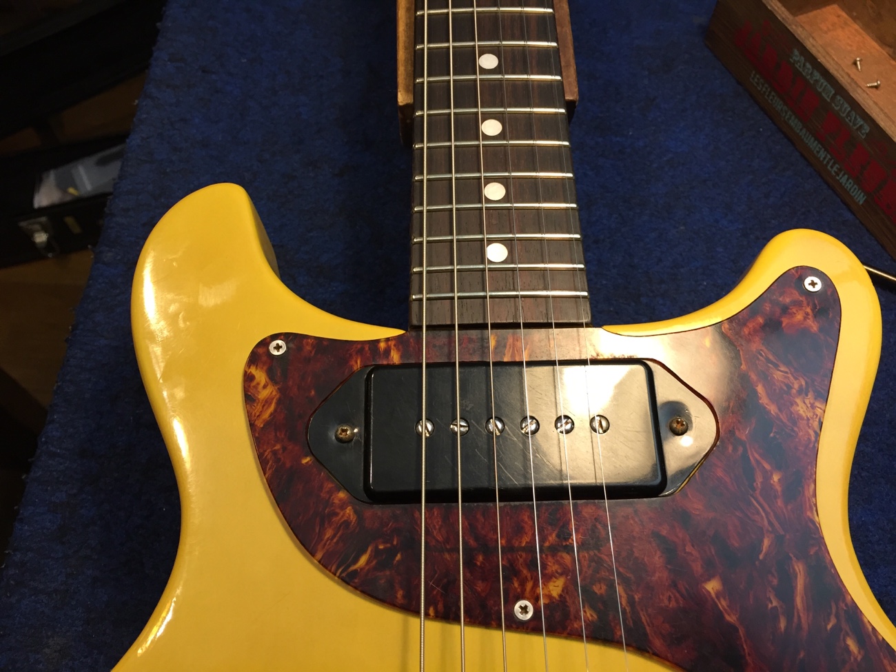 全ての部品を戻した【Burnyのレスポールジュニアタイプのチューンナップ-48】 投稿日時: 2025年11月29日 投稿者: admin ネックがほぼ真っ直ぐセンターにきました。 1弦がピックアップに触れてしまう問題も解消しています。 ピックアップの配線を戻します。 ストラップピンが斜めに付いているのでクッションで隙間を隠しておきましょう。 これで全ての部品が元に戻りました。 トラスロッドを少し締めたので、後日変化がなければ完成としましょう。 Tweet