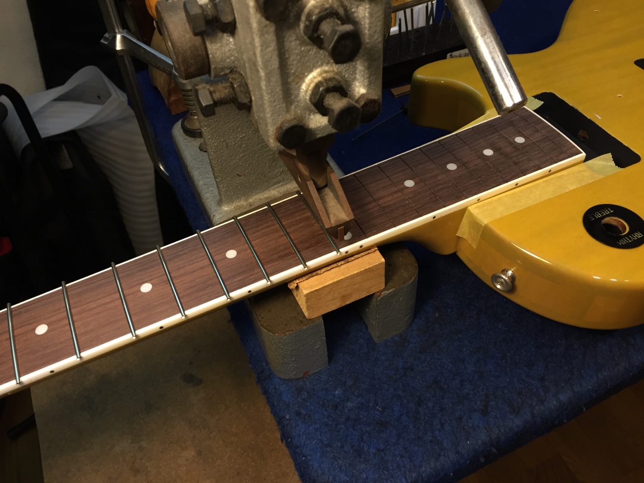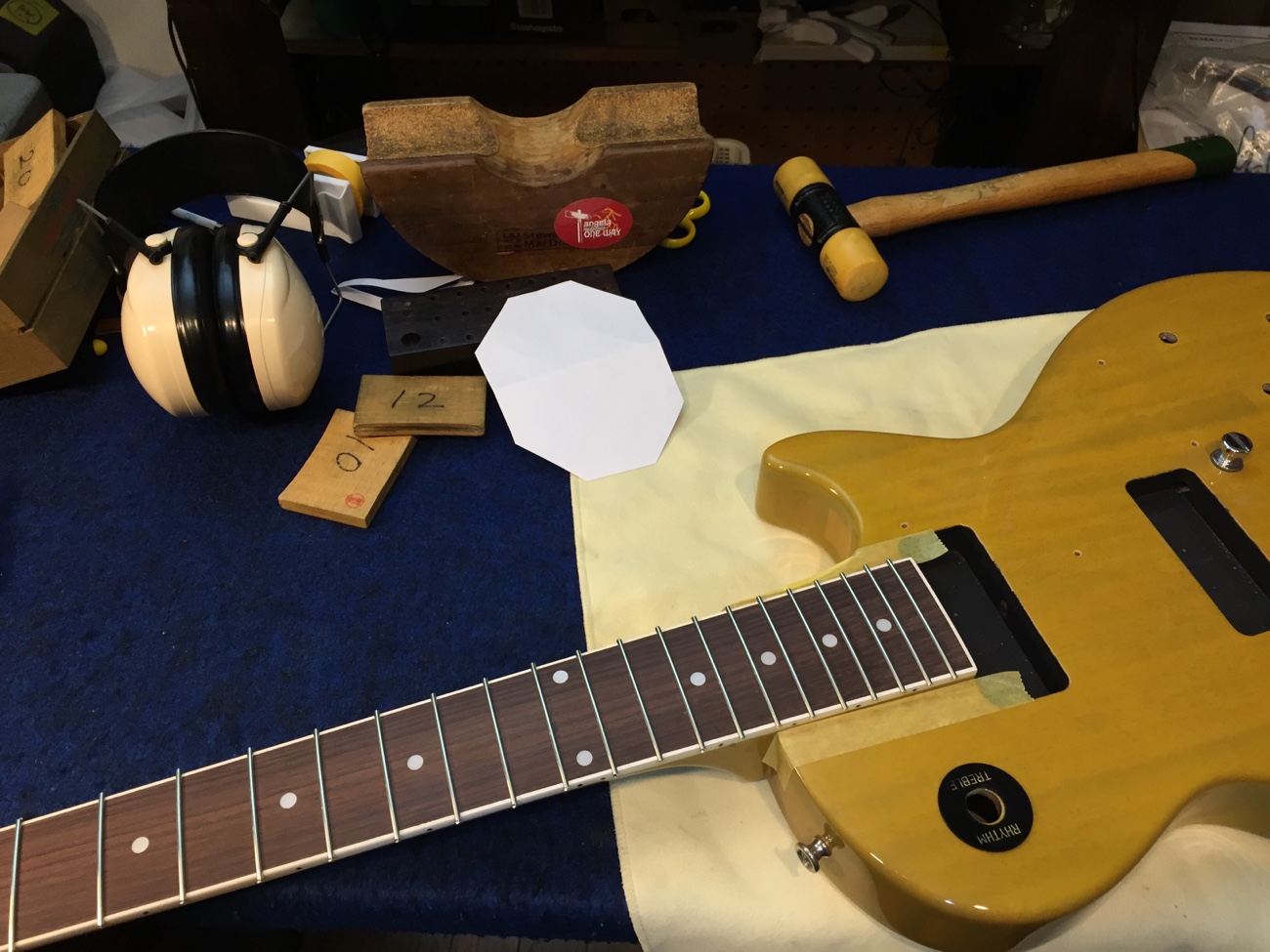 フレットを打った【Tokai LSS158 SEB(20250824お預かり)のチューンナップ-15】 投稿日時: 2025年12月8日 投稿者: admin フレットを曲げ終わったので圧入していきます。 ハイポジションは当て木を使って打ち込みました。 Tweet