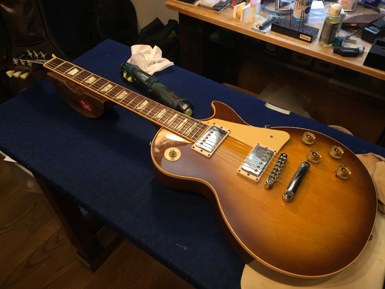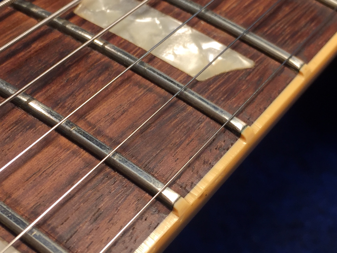 お預かりしました【ギブソンレスポールスタンダード(20251231お預かり)ネックのオーバーホール-1】 投稿日時: 2025年12月31日 投稿者: admin レスポールスタンダードをお預かりしました。 バインディングが縮んでできた隙間に1弦が挟まるので、フレットを交換しつつオーバーバインディングにします。 その他、ペグやブリッジのメンテナンスまでネックのオーバーホールとしてお引き受けしました。 Tweet