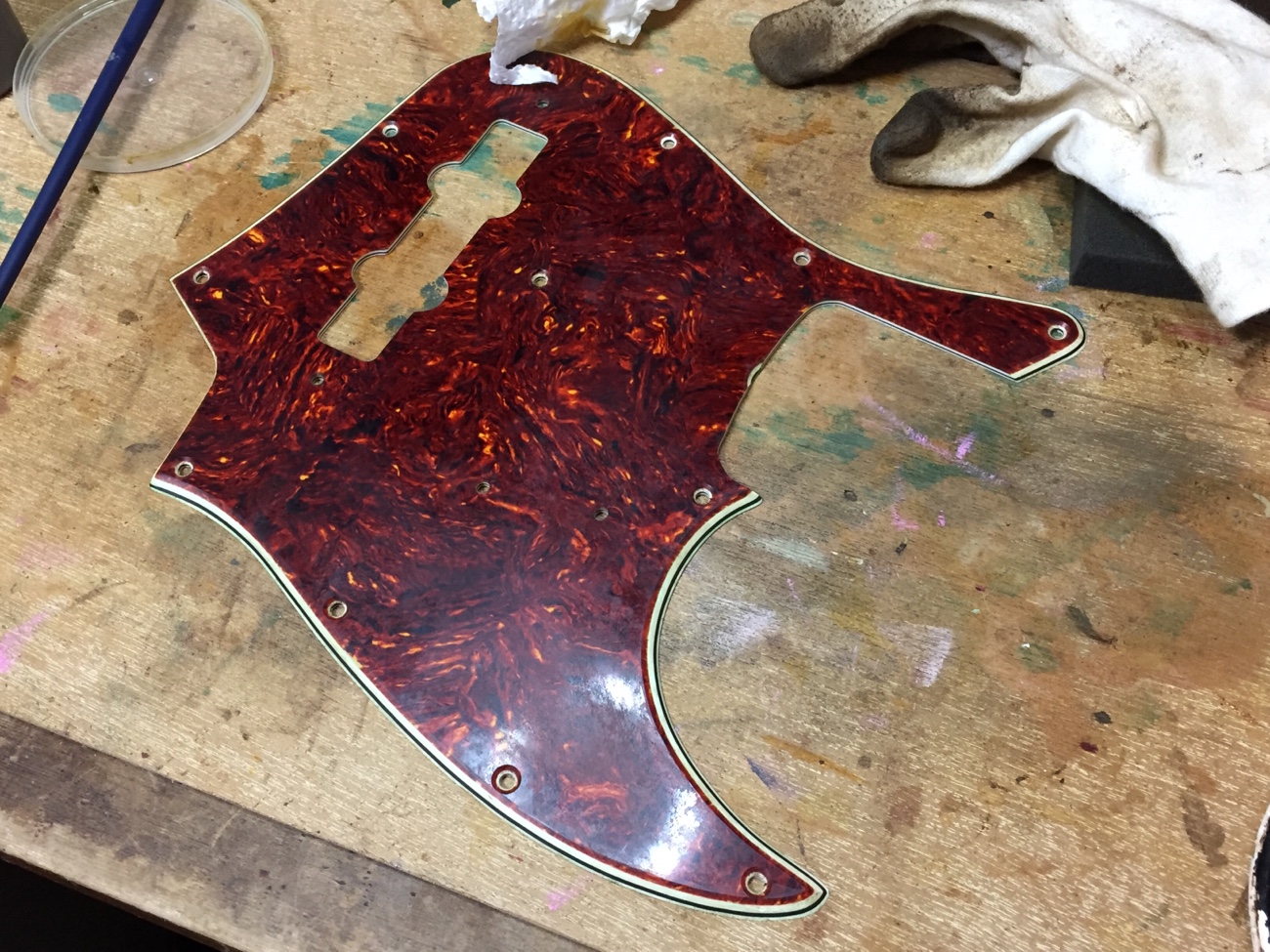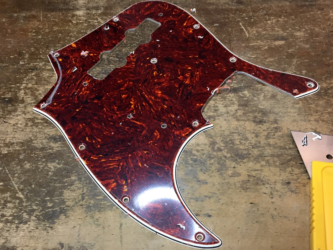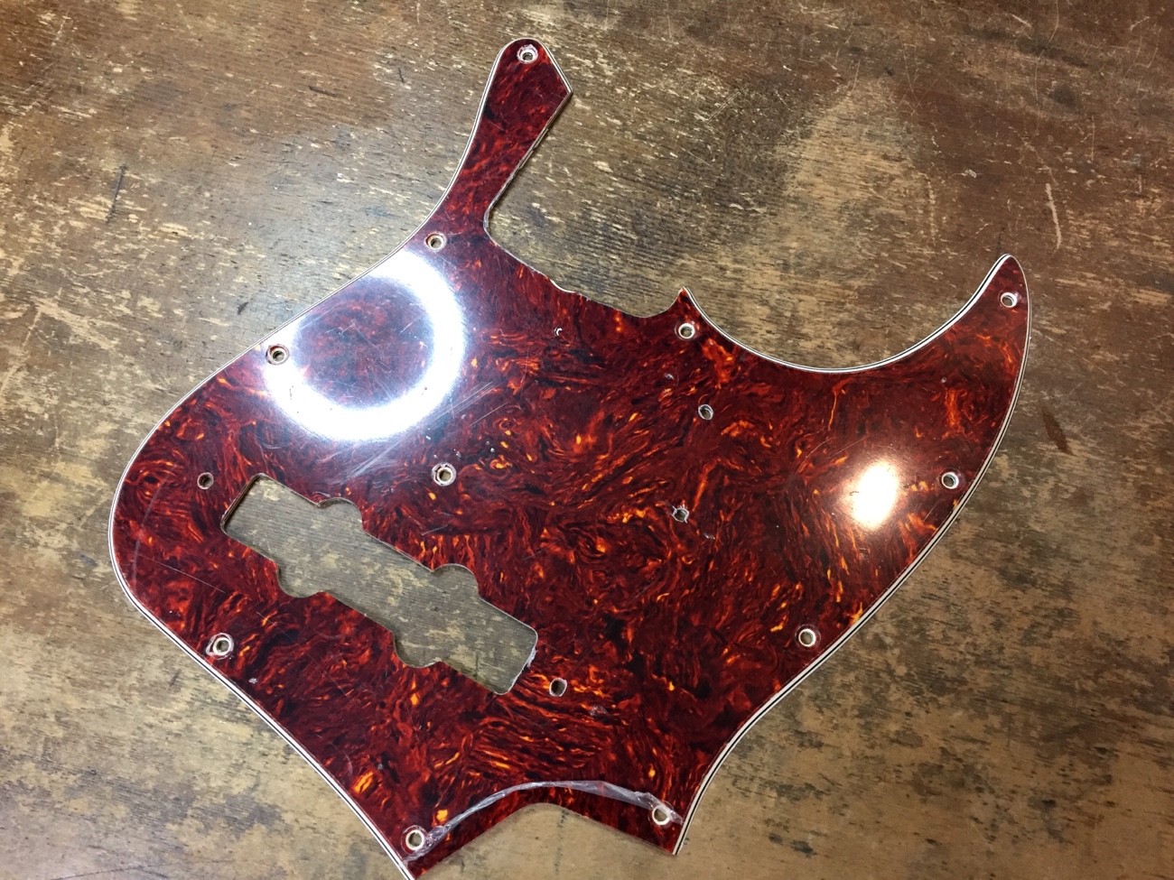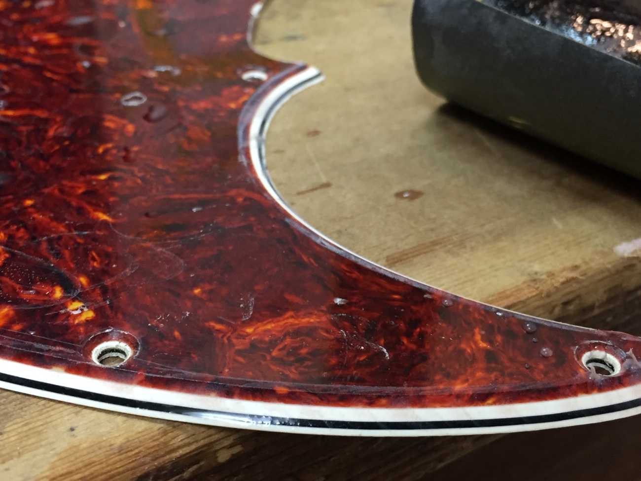 カスタムショップ製オリンピックホワイトJBにリアルセルロイドピックガードを取り付ける-4】