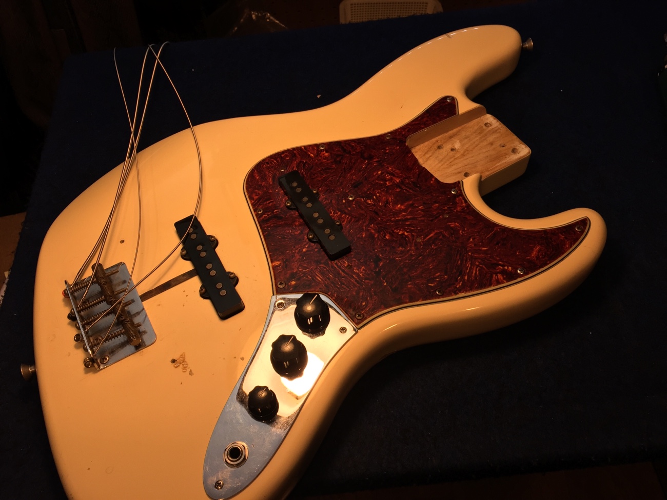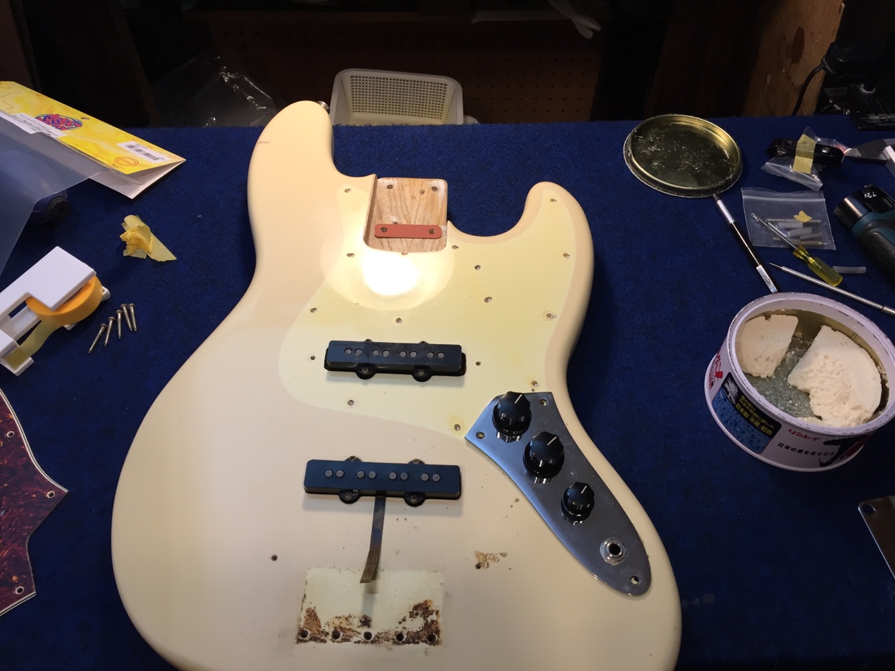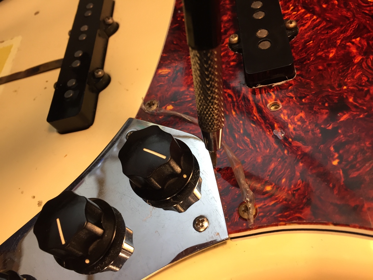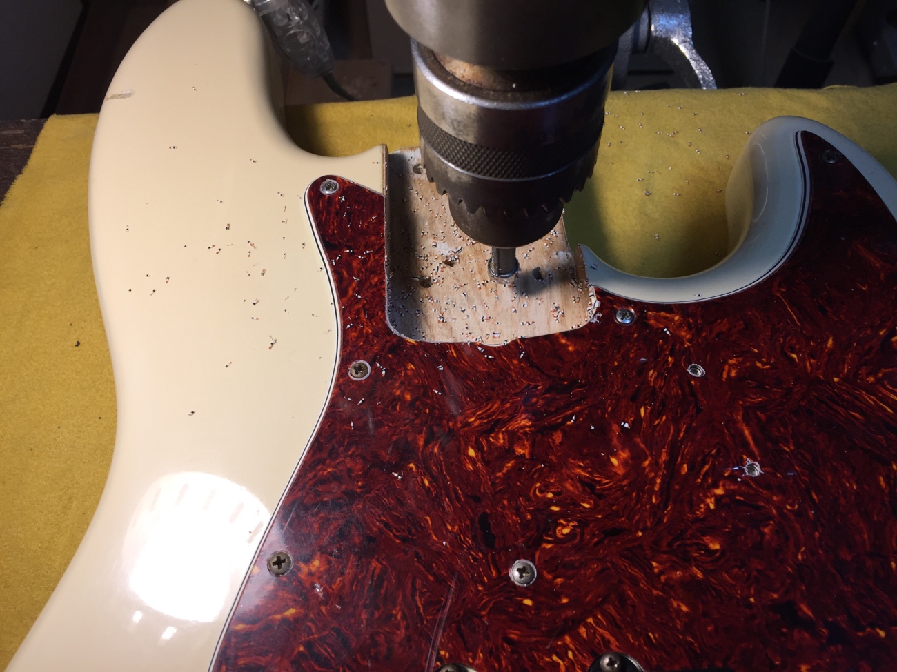 カスタムショップ製オリンピックホワイトJBにリアルセルロイドピックガードを取り付ける-4】