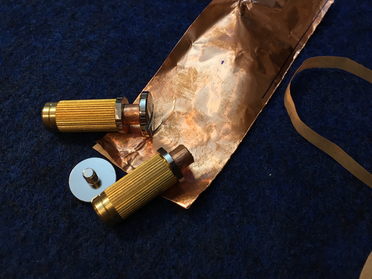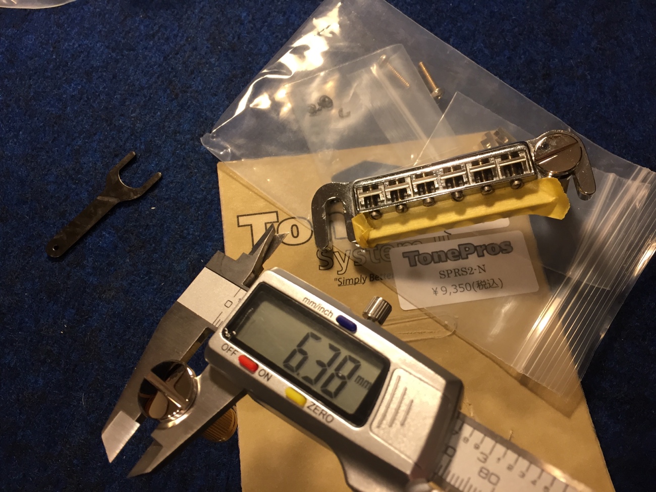トーンプロズのスタッドが届いた【レスポールスペシャル(20260131お預かり)のブリッジ交換-4】 投稿日時: 2026年2月9日 投稿者: admin トーンプロズのPRS用スタッドが届きました。 バダスに使うには少し細いです。 最終的にはロックして使うことになるので、弦溝を切る作業中だけこうやって銅箔テープで太っておいてもらうことにします。 まずはフレットのすり合わせから始めます。 Tweet