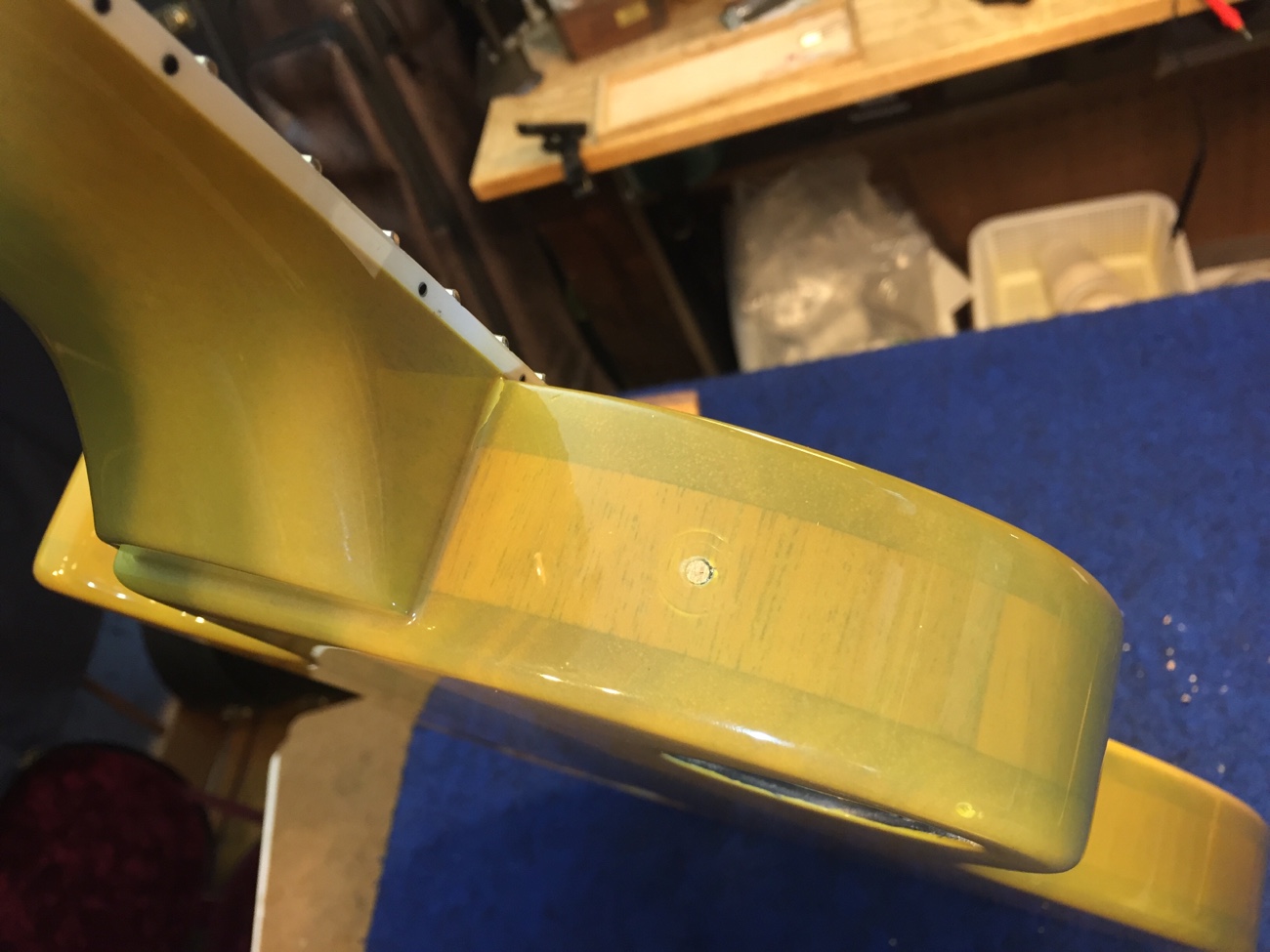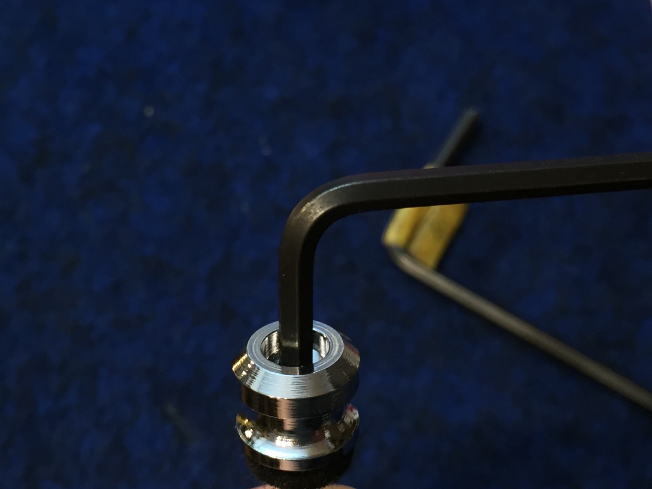 ロックピンの取り付け【Tokai LSS158 SEB(20250824お預かり)のチューンナップ-17】 投稿日時: 2026年2月9日 投稿者: admin 埋木したところを整えます。 ロックピンの取りつけができました。 そういえばシャーラーのロックピンのこの部分↓って以前は3mmでは少し緩くて、1/8インチが合うような気がしていたのですが、3mmでピッタリにマイナーチェンジしましたか? Tweet