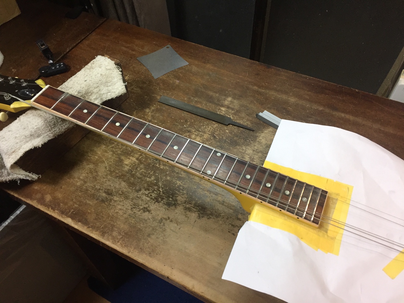 フレットのすり合わせをしていきましょう。