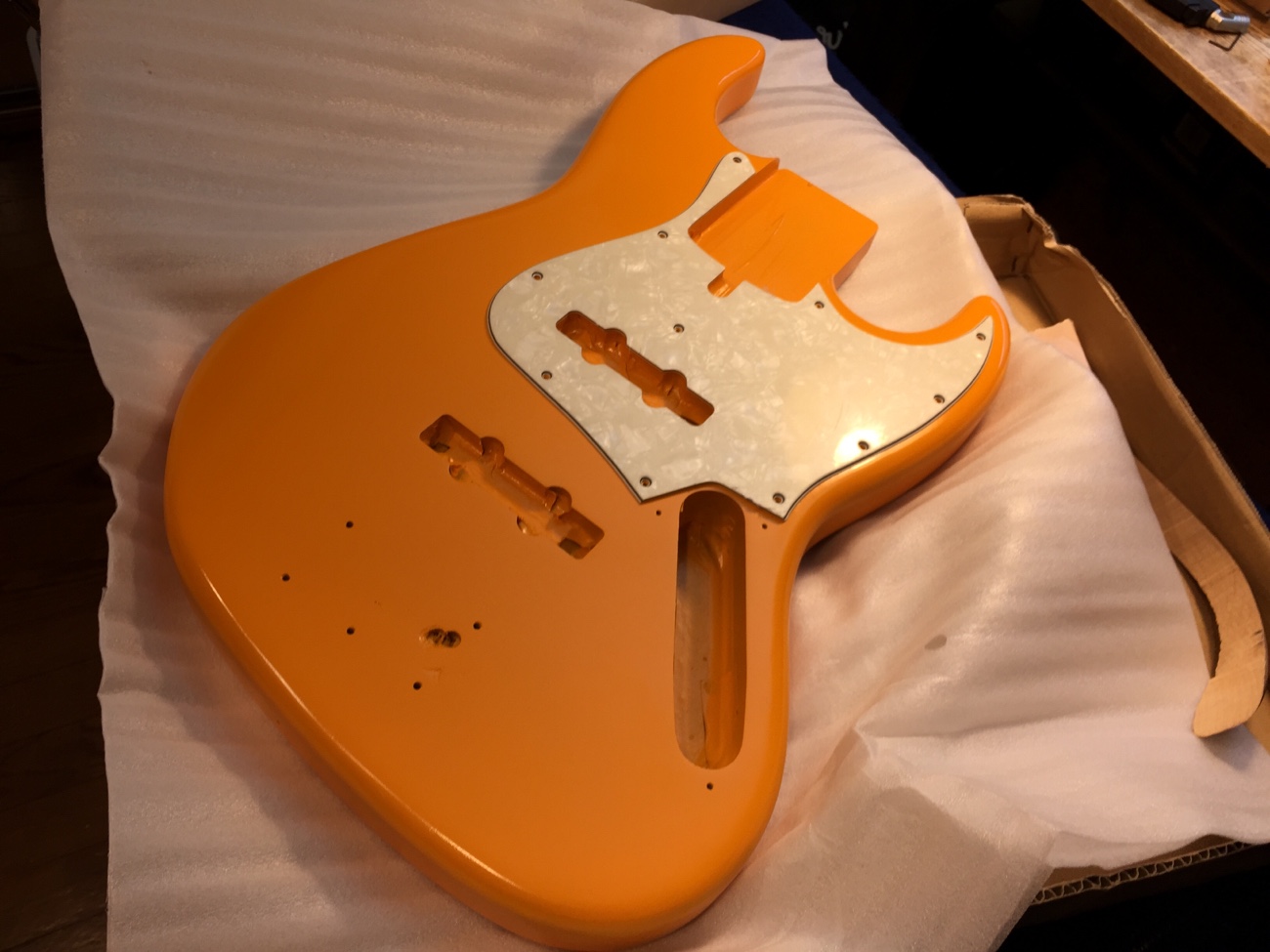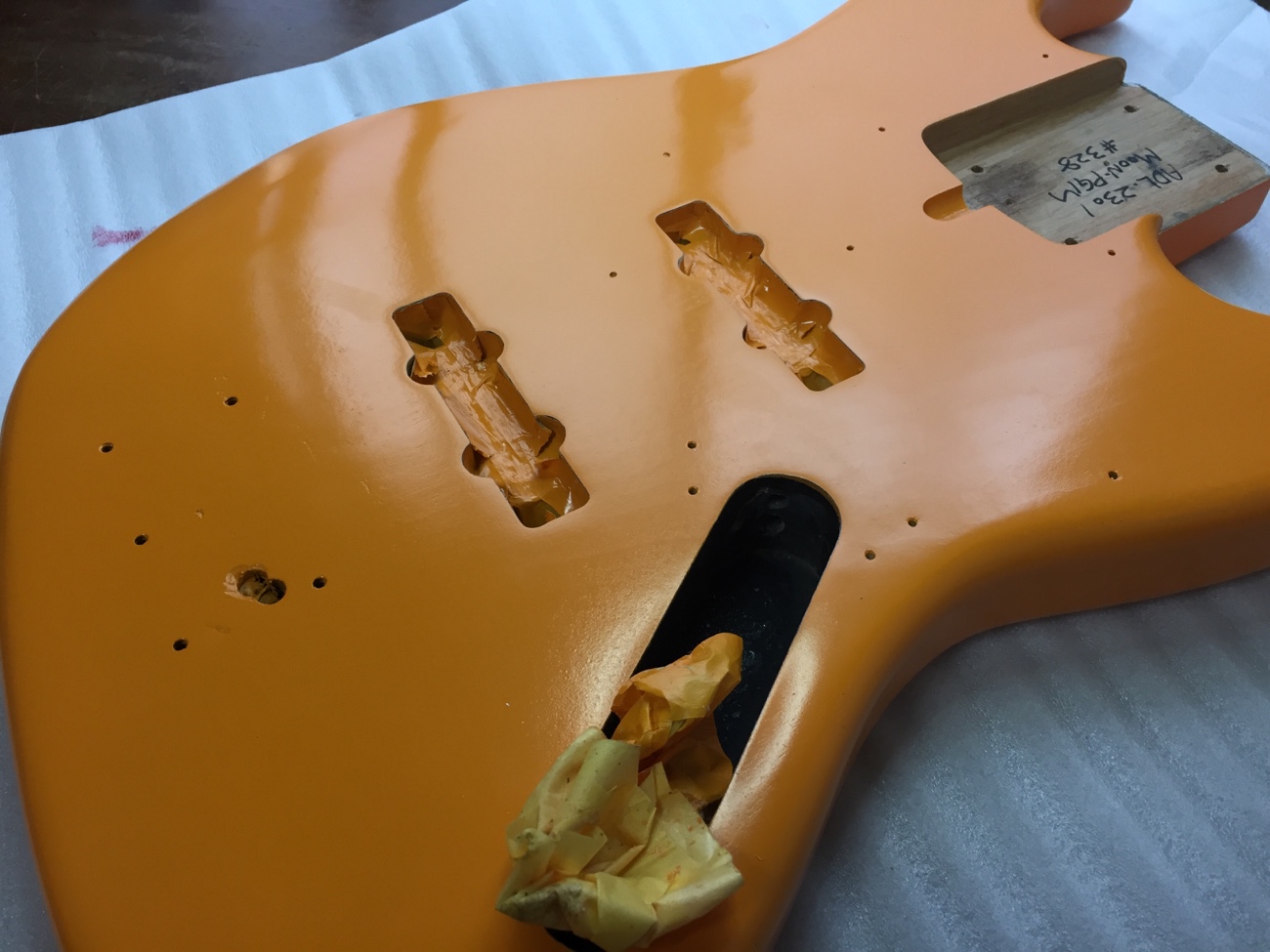マスキングテープを剥がす【Moon5弦にXTCTを増設する-16】 投稿日時: 2026年3月21日 投稿者: admin 塗装から帰ってきました。 オレンジがかわいいですね。 マスキングテープを剥がしていきます。 裏蓋を作っていきましょう。 Tweet