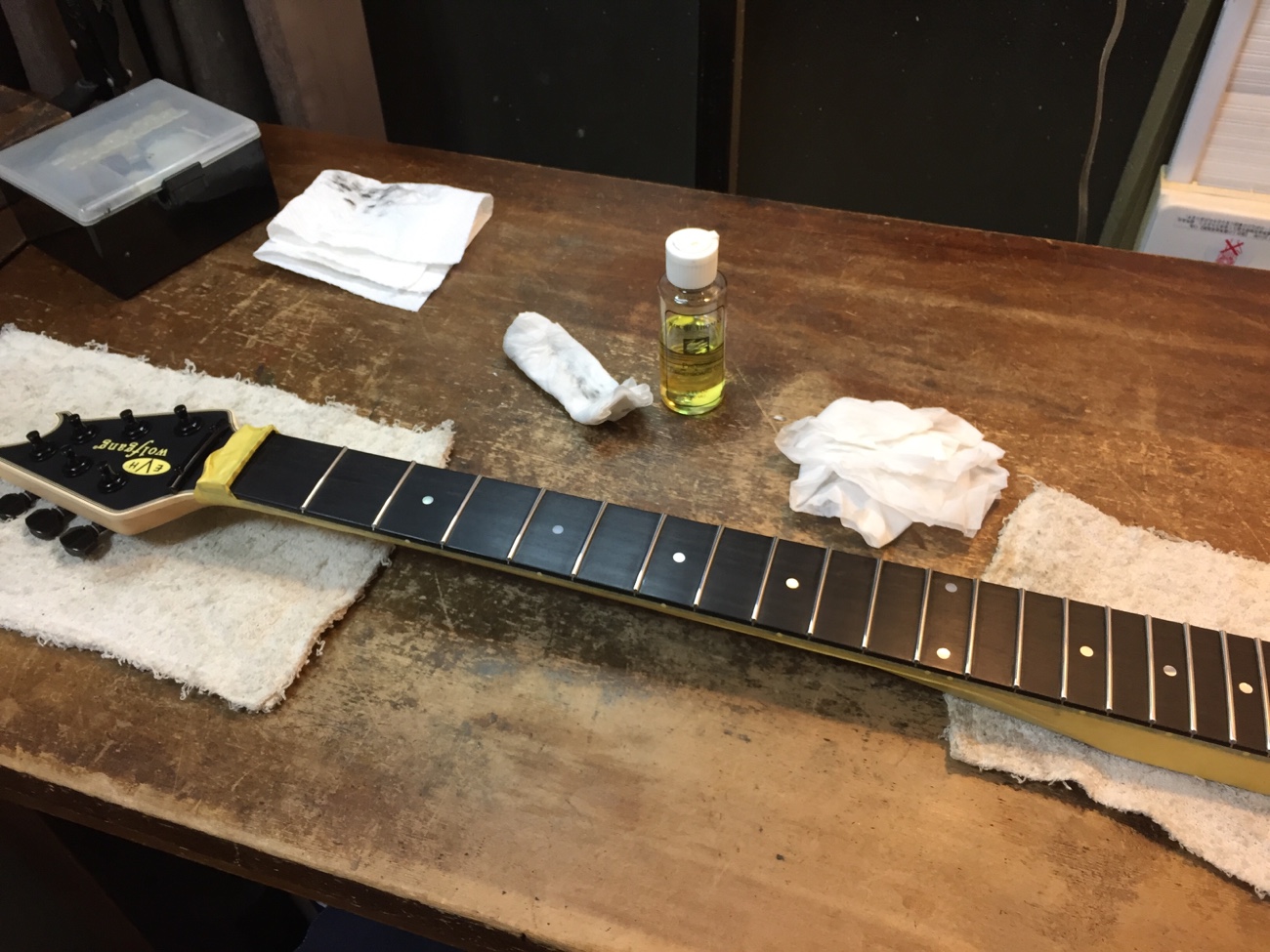 超極薄塗装かオイルフィニッシュか分かりませんが、少しメイプル側を削ってオイルフィニッシュし直しておくのも良いかもしれません。