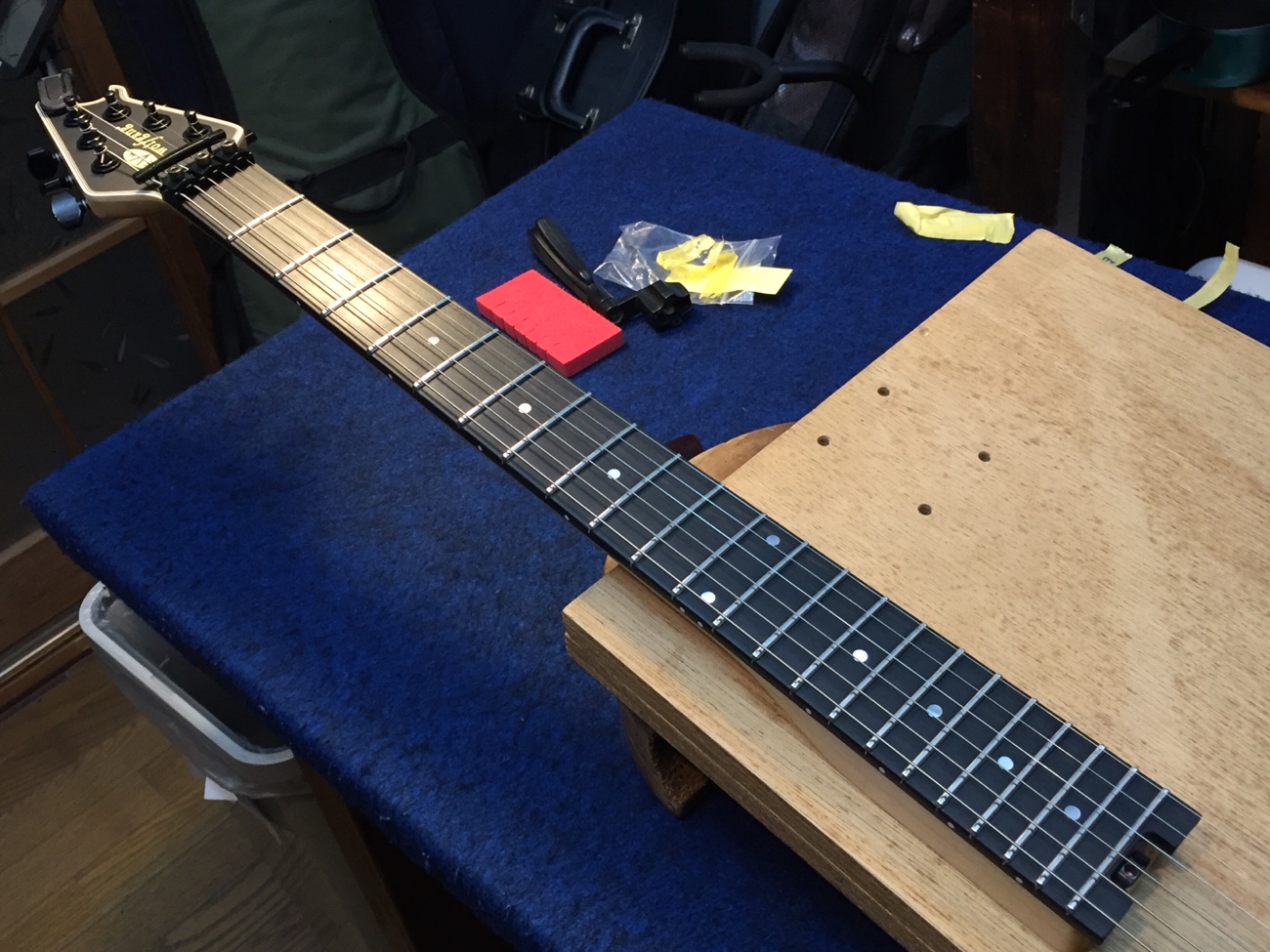 ダミーボディなので弾いたときの共鳴の仕方が変わっていて違和感がありますが、これで作業完了で良さそうです。