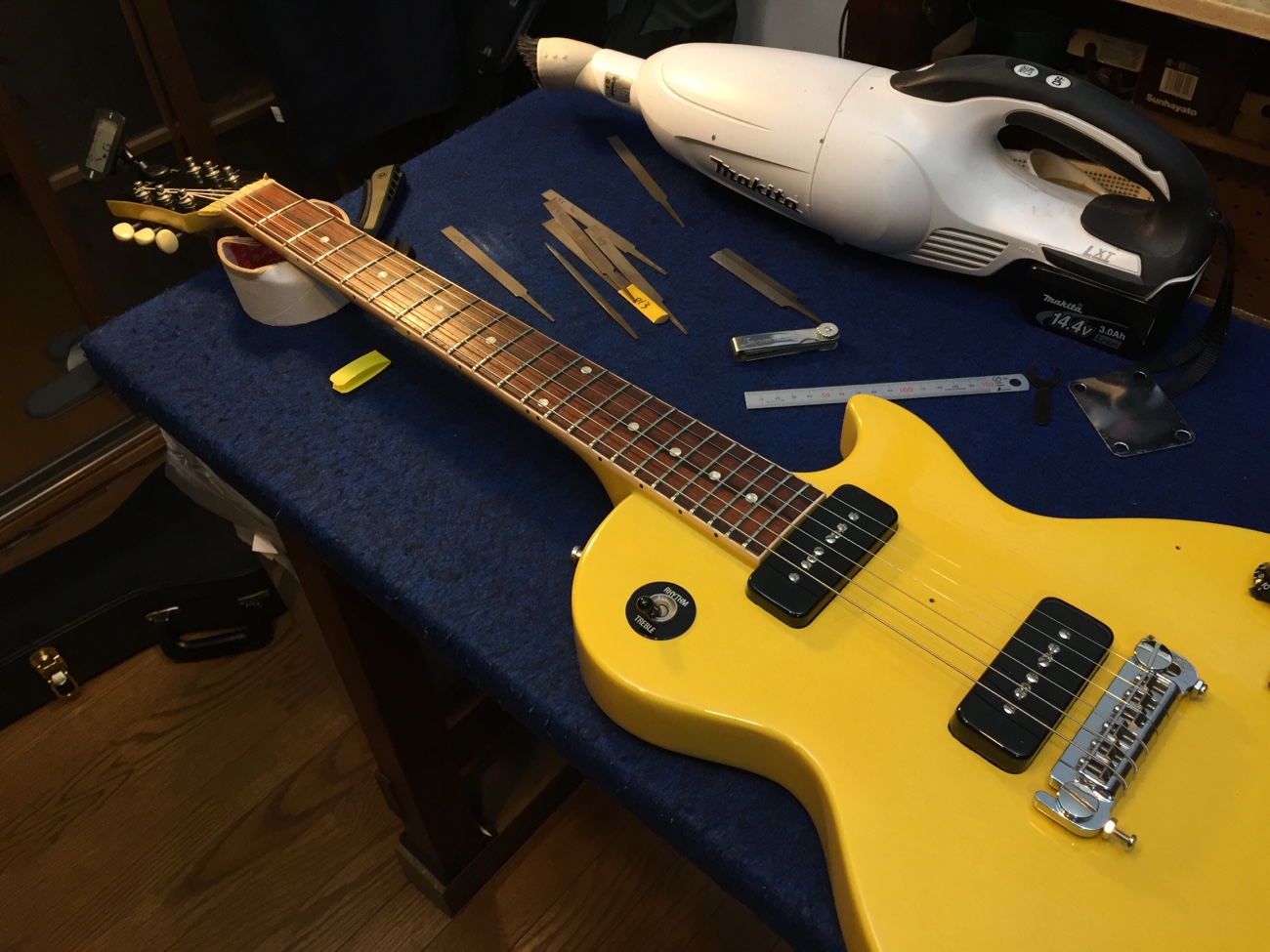 ナットの弦溝の深さを追い込んでいきます。