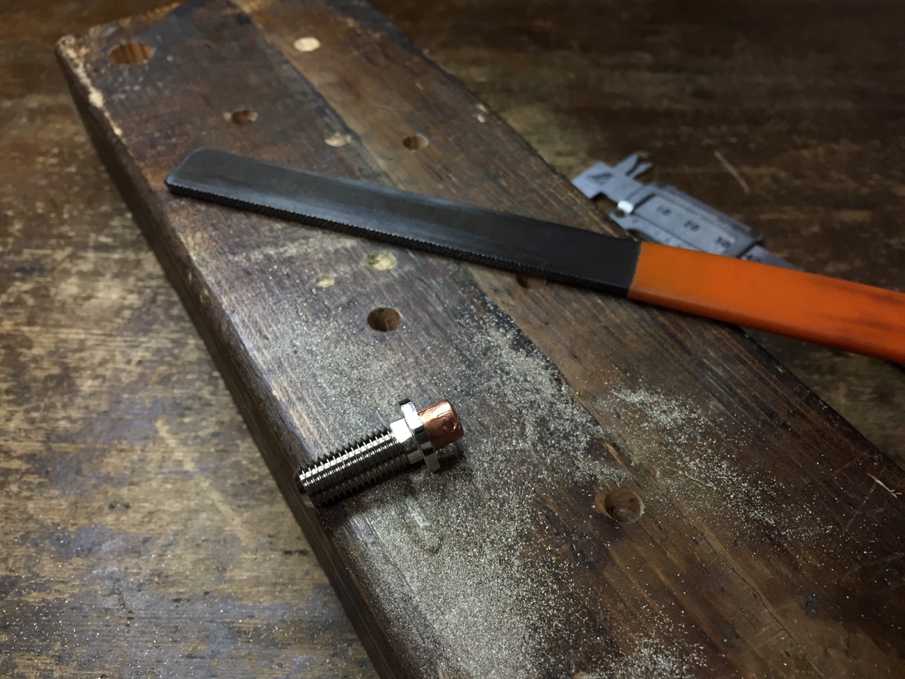 軸の根元の部分にはネジが切られていません。 その部分を、ネジの谷より細くなるように手作業で削りました。