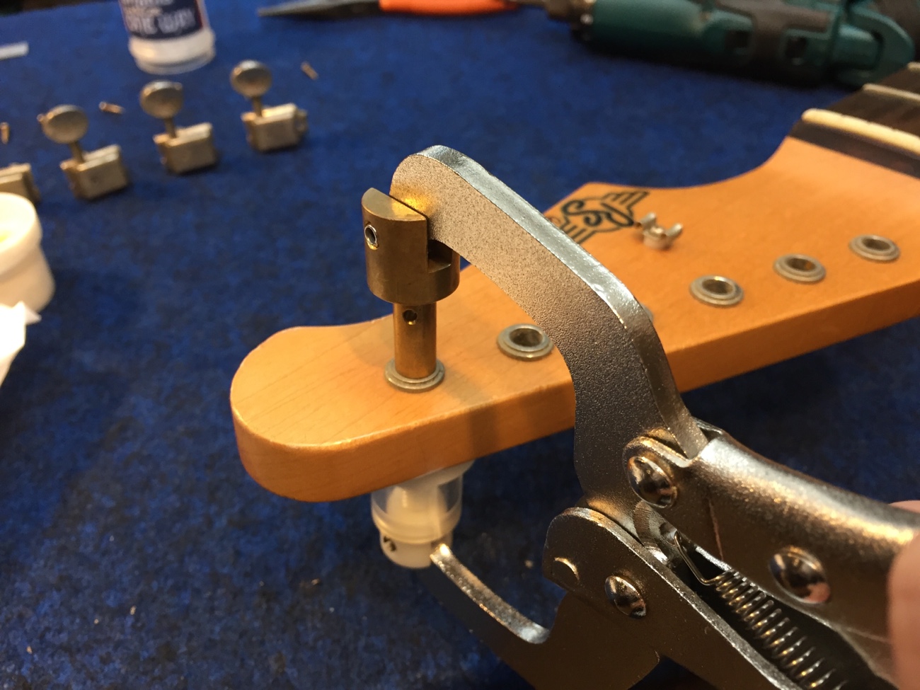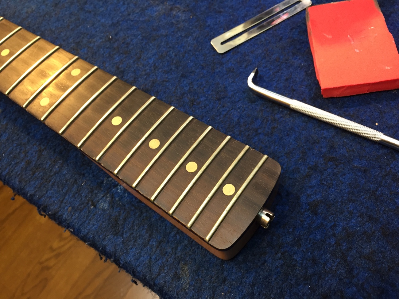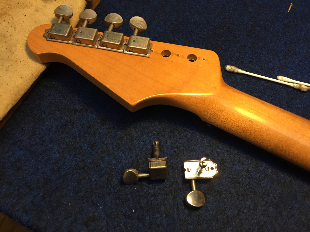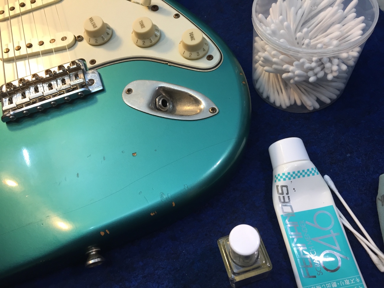 RSギターワークスを定期メンテナンスにお持ち頂きました 投稿日時: 2026年4月5日 投稿者: admin 定期的なメンテナンスをしに、ストラトタイプのギターをお持ち頂きました。 ジャックが曇っていたので磨いておきました。 ブッシュの浮きが一番気になりました。 再固定しておきます。 ブッシュの内側やペグポストを磨いて薄くグリスを塗っておきます。 ネックの反りは問題なさそうでしたが、ロッドナットにトルク材を塗ってメンテナンスしておきます。 弦高調整、オクターブチューニング、ピックアップの高さ調整などをしました。 各部の清掃とネジの緩みがないかのチェックなどをして完成です。 Tweet